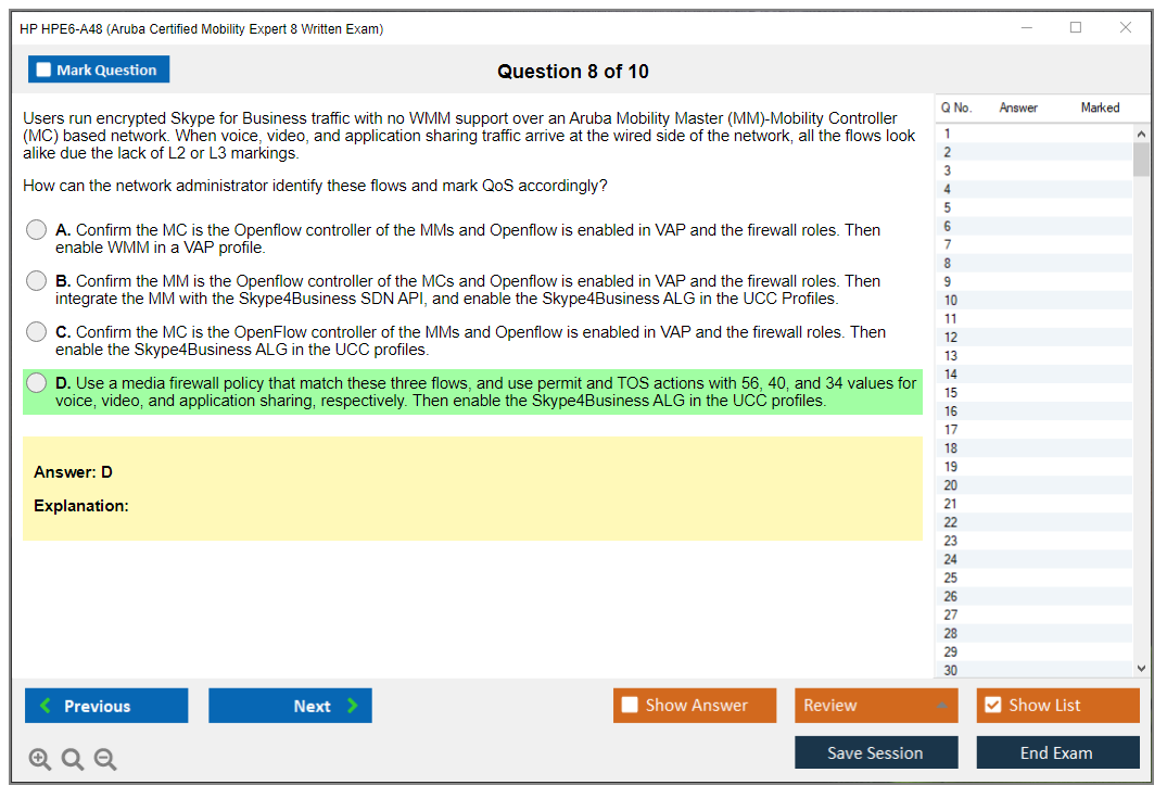 Note: HP HPE6-A48 (Aruba Certified Mobility Expert 8 Written Exam) will not receive any new updates.