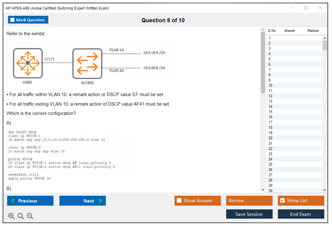 The HP HPE6-A69 (Aruba Certified Switching Expert Written Exam) is designed to validate the technical skills and knowledge required to design, implement, and troubleshoot complex network solutions using Aruba products and technologies.