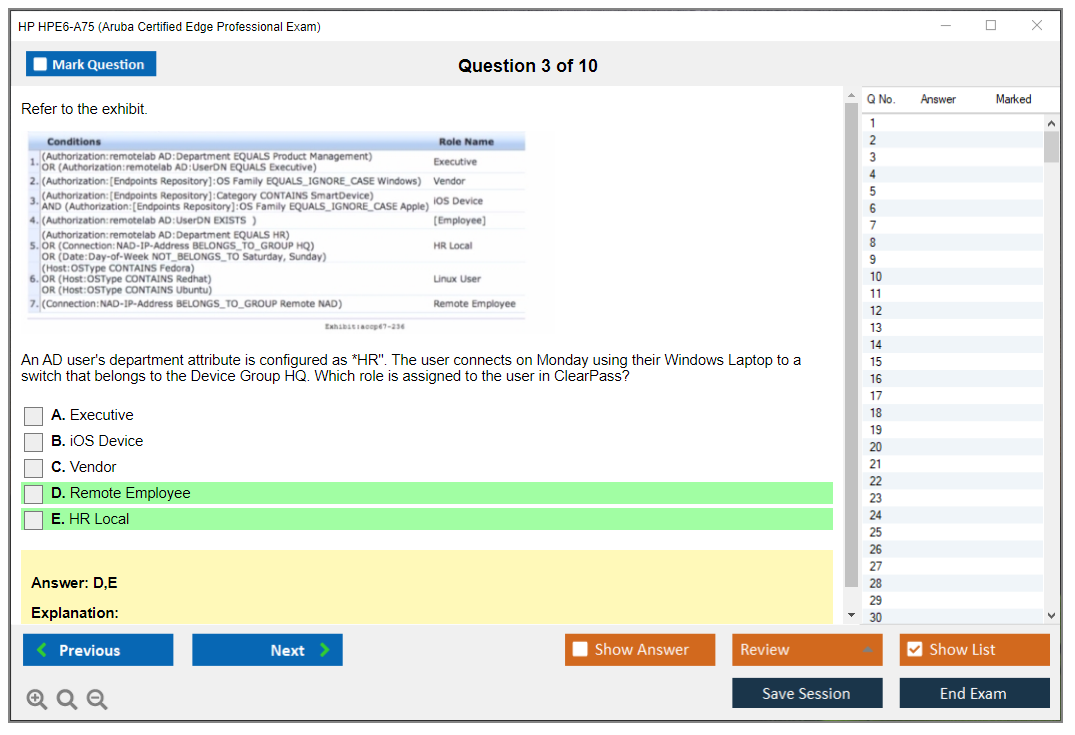 The HP HPE6-A75 (Aruba Certified Edge Professional Exam) is designed for IT professionals who deploy, manage, and troubleshoot advanced Aruba wired and wireless network solutions. It validates the skills and knowledge required to implement and configure advanced Aruba solutions, including network security, mobile and IoT solutions, and advanced troubleshooting.
