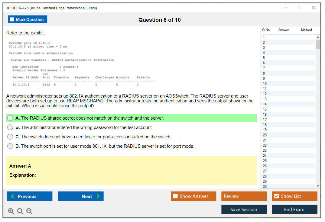 Sample questions for the HP HPE6-A75 Exam can be found on the official Aruba certification website or through various online certification preparation resources.