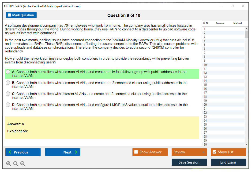 The HP HPE6-A79 exam, also known as the Aruba Certified Mobility Expert Written Exam, is designed to validate the skills and knowledge of candidates in advanced topics related to Aruba Mobility solutions. This certification is aimed at IT professionals who are responsible for the design, implementation, and management of complex mobile and wireless network solutions using Aruba products and technologies.