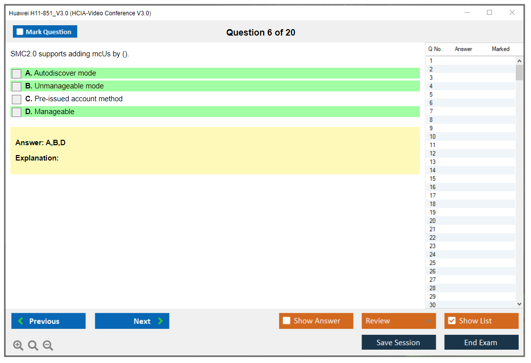 The Huawei H11-851_V3.0 (HCIA-Video Conference V3.0) Exam is designed to validate the knowledge and skills of professionals in the field of video conferencing. It covers various aspects of video conferencing technologies, including system installation, configuration, management, and troubleshooting.