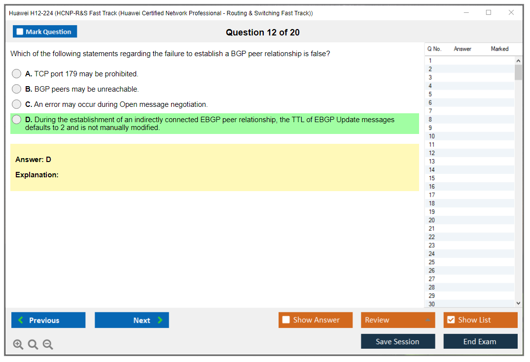 The Huawei H12-224 Exam is part of the HCNP-R&S certification track, which is designed to validate advanced skills in routing and switching. It is a step up from the HCIA-R&S certification and can lead to the HCIE-R&S certification.
