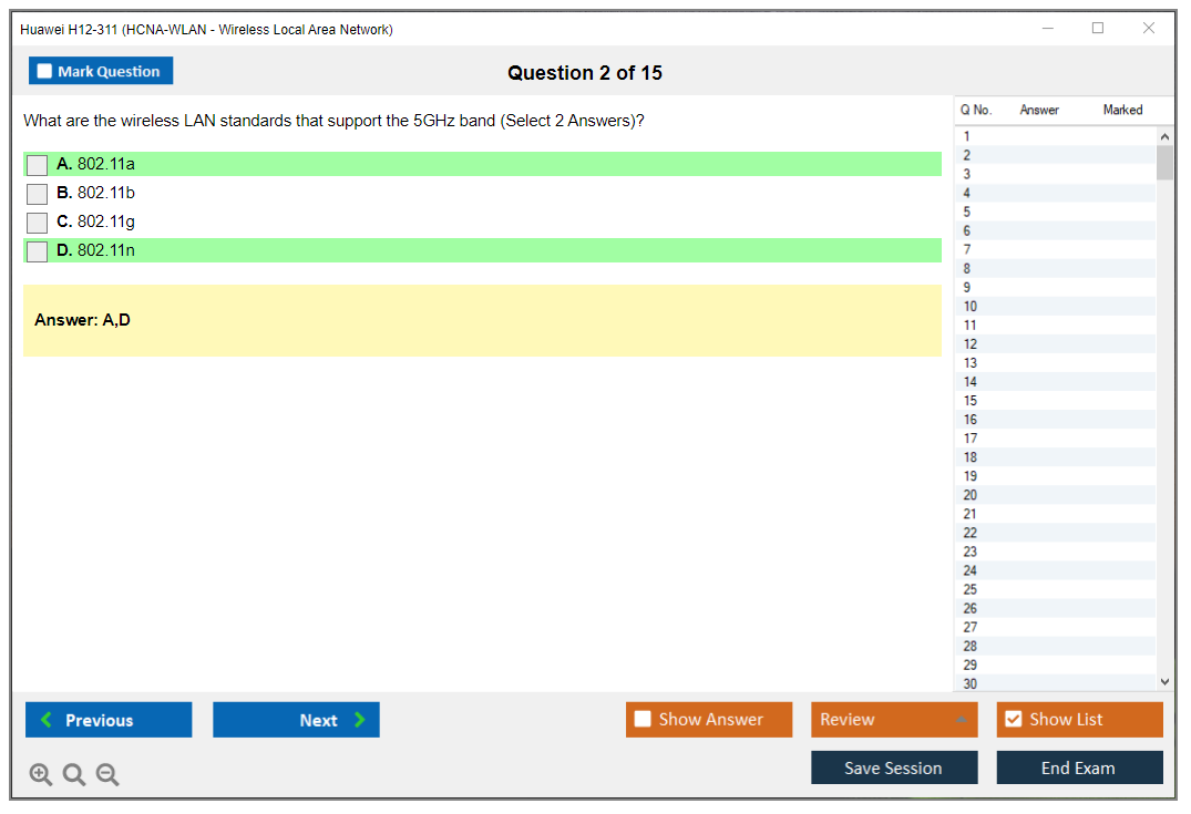 Note: Huawei H12-311 (HCNA-WLAN - Wireless Local Area Network) will not receive any new updates.