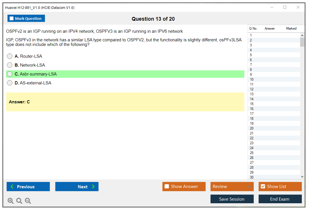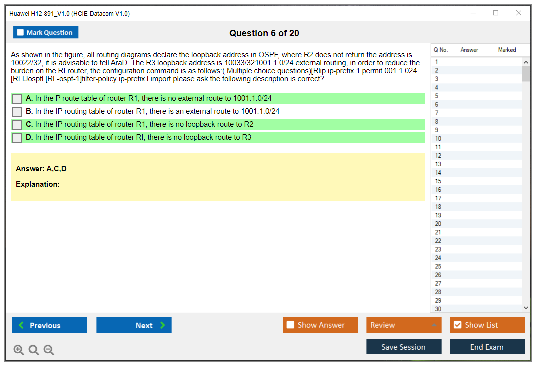 The Huawei H12-891_V1.0 Exam, also known as HCIE-Datacom V1.0, is aimed at professionals looking to demonstrate their expertise in data communication networks. This exam tests candidates on various aspects of network technologies, including routing, switching, network security, and network management.