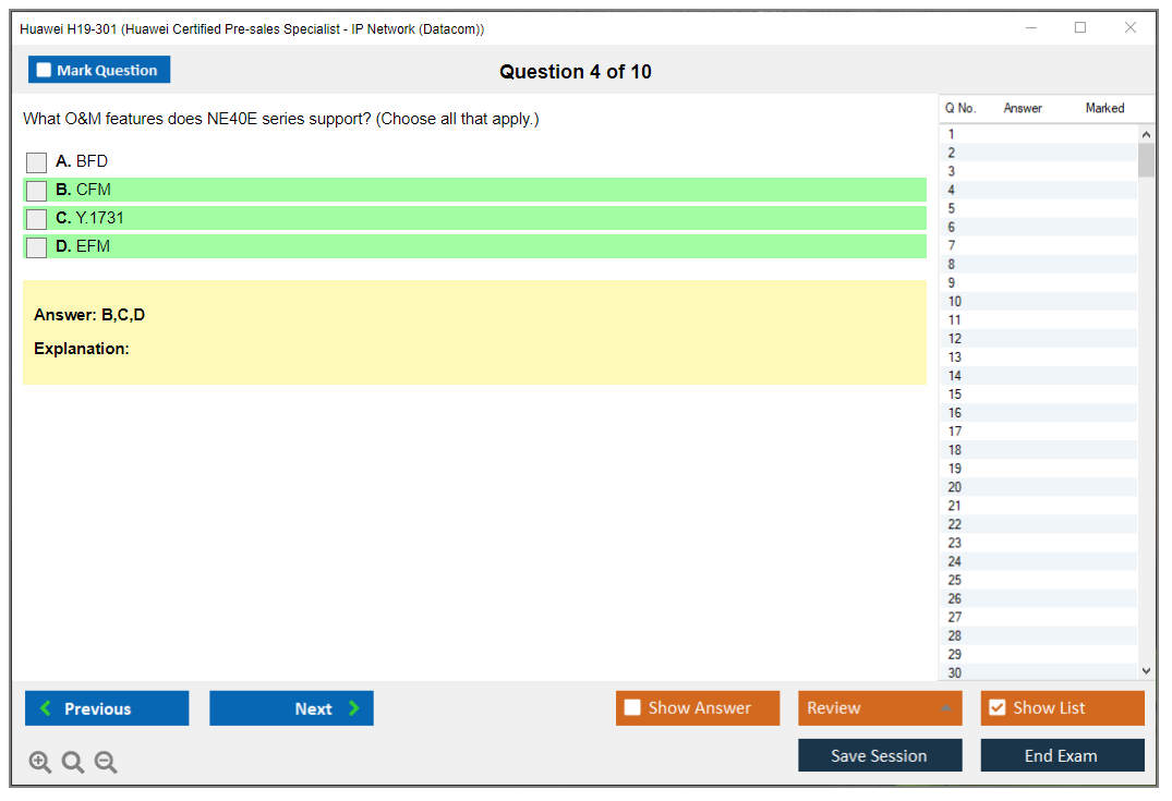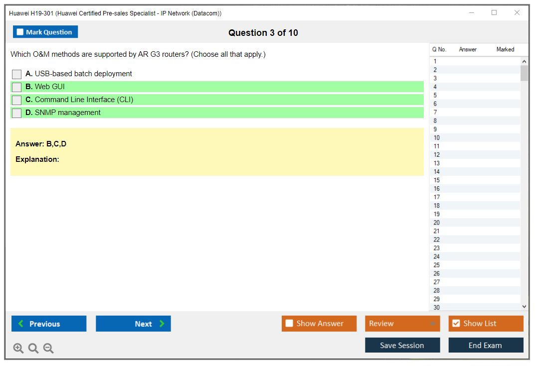 The question format of the Huawei H19-301 Exam includes multiple-choice questions, multiple response questions, and drag-and-drop questions.