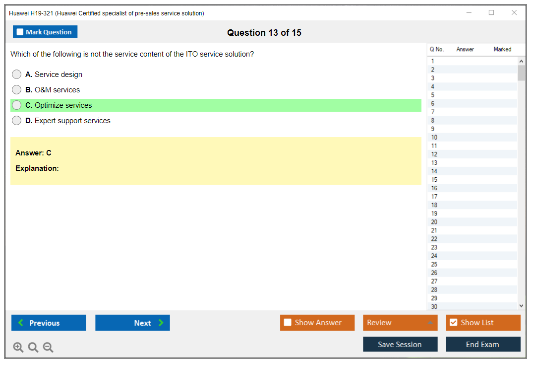 The Huawei H19-321 exam, also known as the Huawei Certified Pre-sales Specialist - Service Solution exam, is designed to validate the knowledge and skills of professionals in the field of service solutions and pre-sales activities related to Huawei technologies.