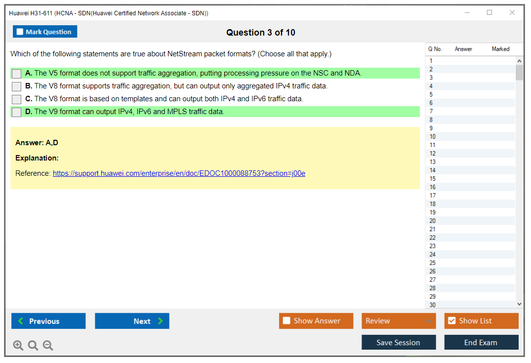 Note: Huawei H31-611 (HCNA - SDN(Huawei Certified Network Associate - SDN)) will not receive any new updates.