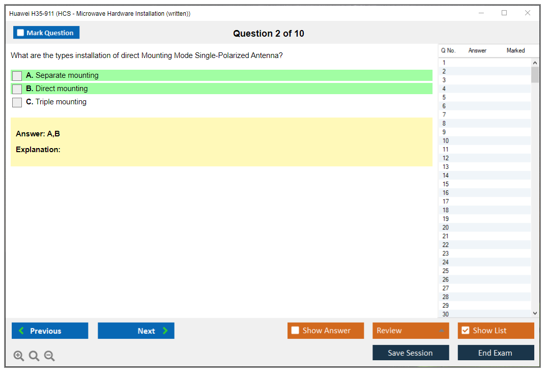 The Huawei H35-911 (HCS - Microwave Hardware Installation (written)) Exam is a certification exam designed to test the knowledge and skills required for installing and maintaining Huawei microwave hardware. It focuses on various aspects of microwave hardware installation, including planning, configuration, and troubleshooting.