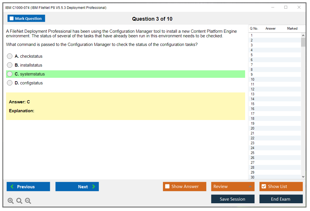 The IBM C1000-074 (IBM FileNet P8 V5.5.3 Deployment Professional) exam is designed to validate the skills and knowledge necessary to deploy and manage IBM FileNet P8 V5.5.3 solutions.