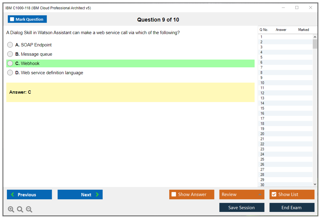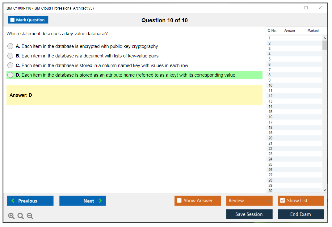 The IBM C1000-118 (IBM Cloud Professional Architect v5) exam is an assessment for professionals aiming to demonstrate their expertise in IBM Cloud solutions. It covers topics such as cloud architecture, design principles, and best practices for implementing IBM Cloud services.
