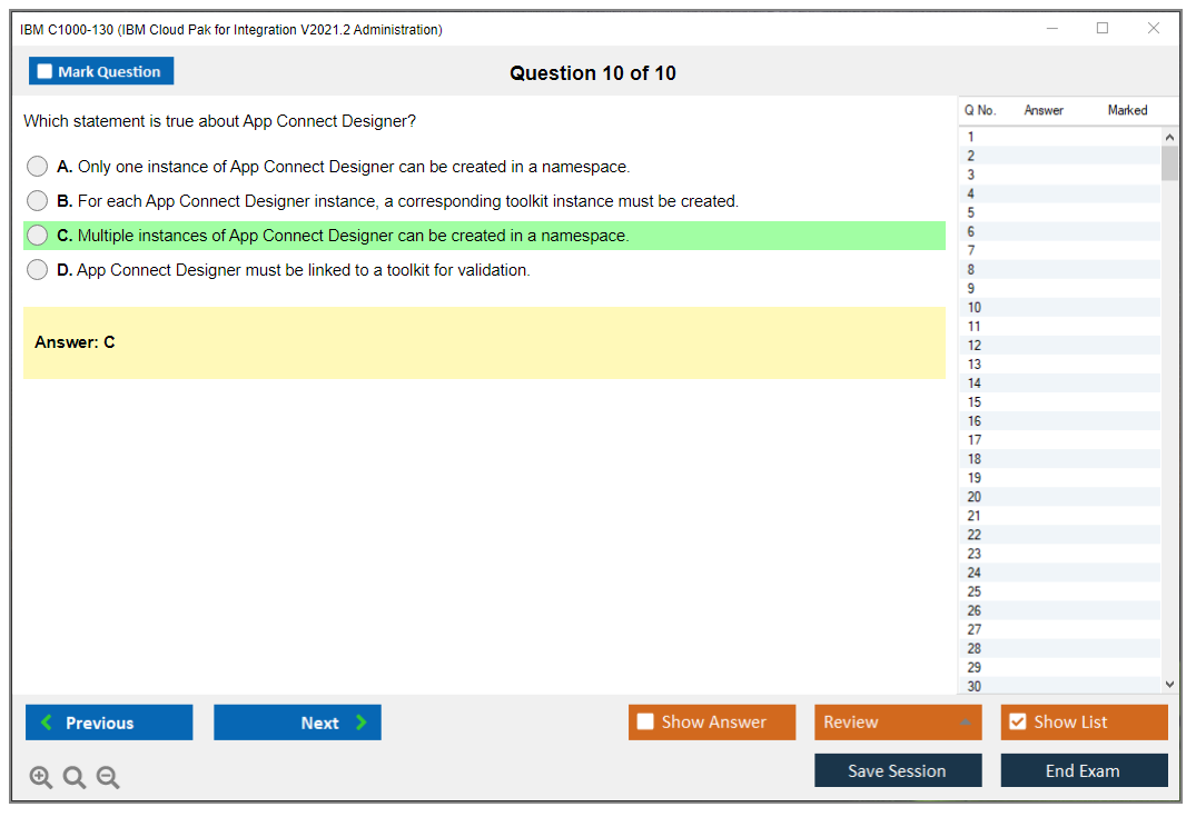 The IBM C1000-130 exam is part of the IBM Professional Certification Program and can be a step towards achieving advanced certifications in IBM Cloud and Integration technologies.
