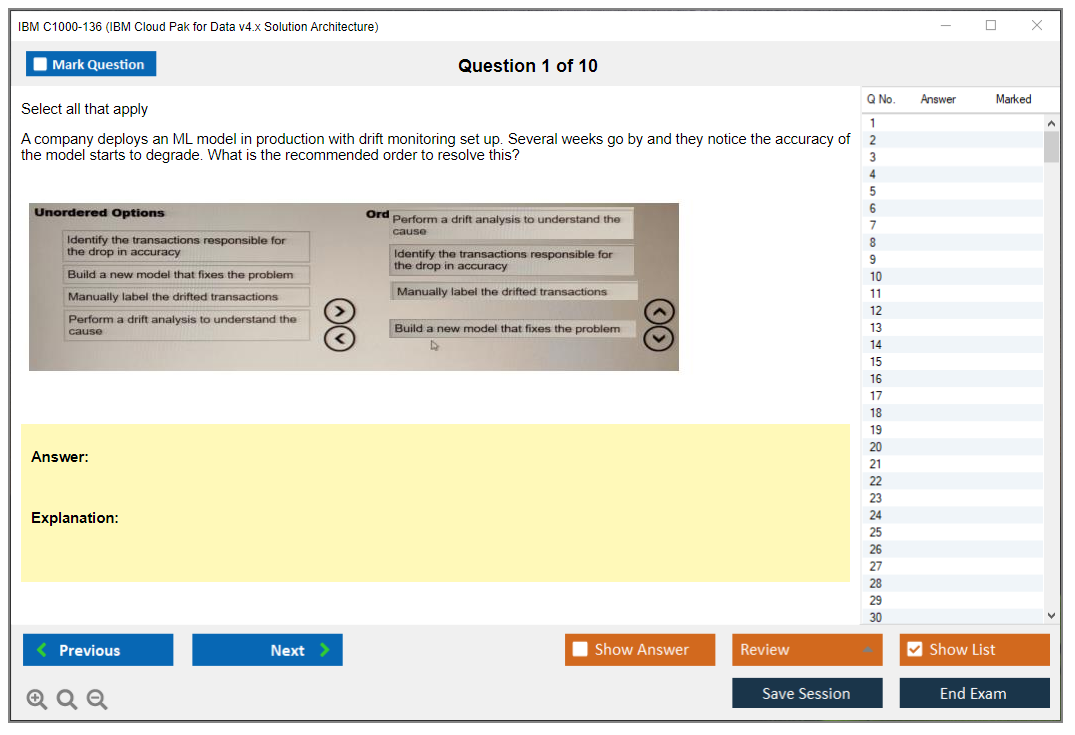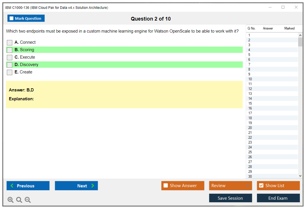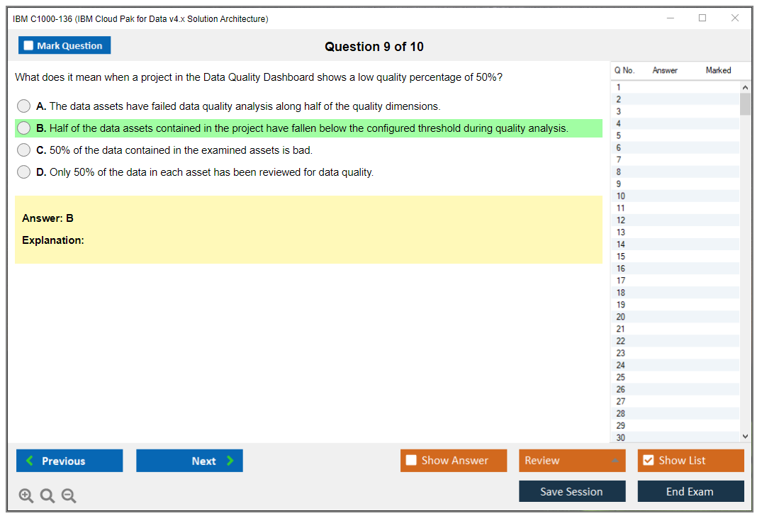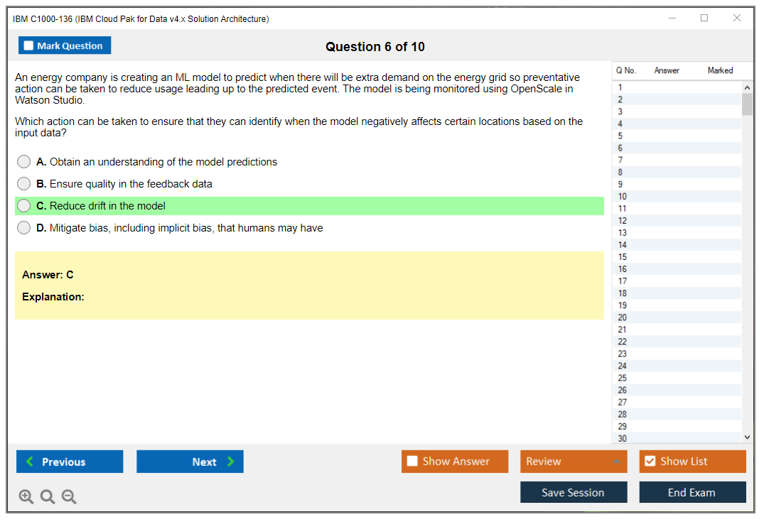 The IBM C1000-136 (IBM Cloud Pak for Data v4.x Solution Architecture) Exam is designed to validate the skills and knowledge of professionals working with IBM Cloud Pak for Data. It assesses the ability to design, plan, and manage IBM Cloud Pak for Data solutions.