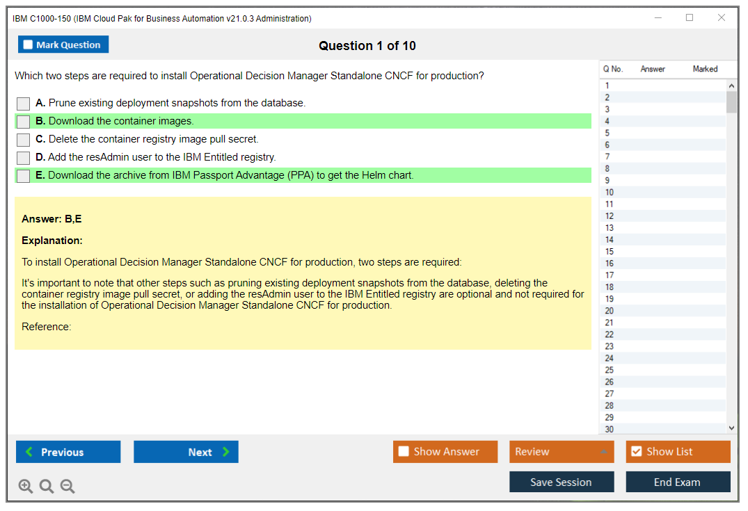 There are no formal prerequisites for the IBM C1000-150 Exam, but it is recommended that candidates have practical experience and knowledge of the IBM Cloud Pak for Business Automation platform.