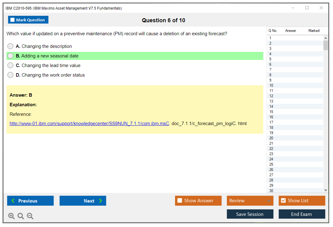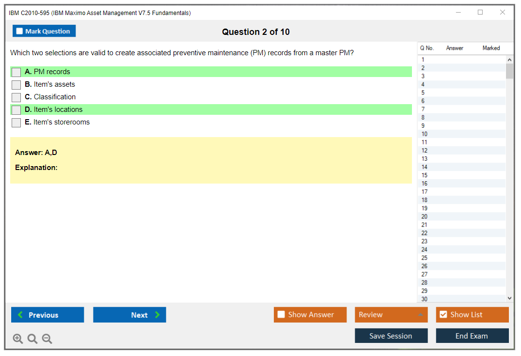 Note: IBM C2010-595 (IBM Maximo Asset Management V7.5 Fundamentals) will not receive any new updates.