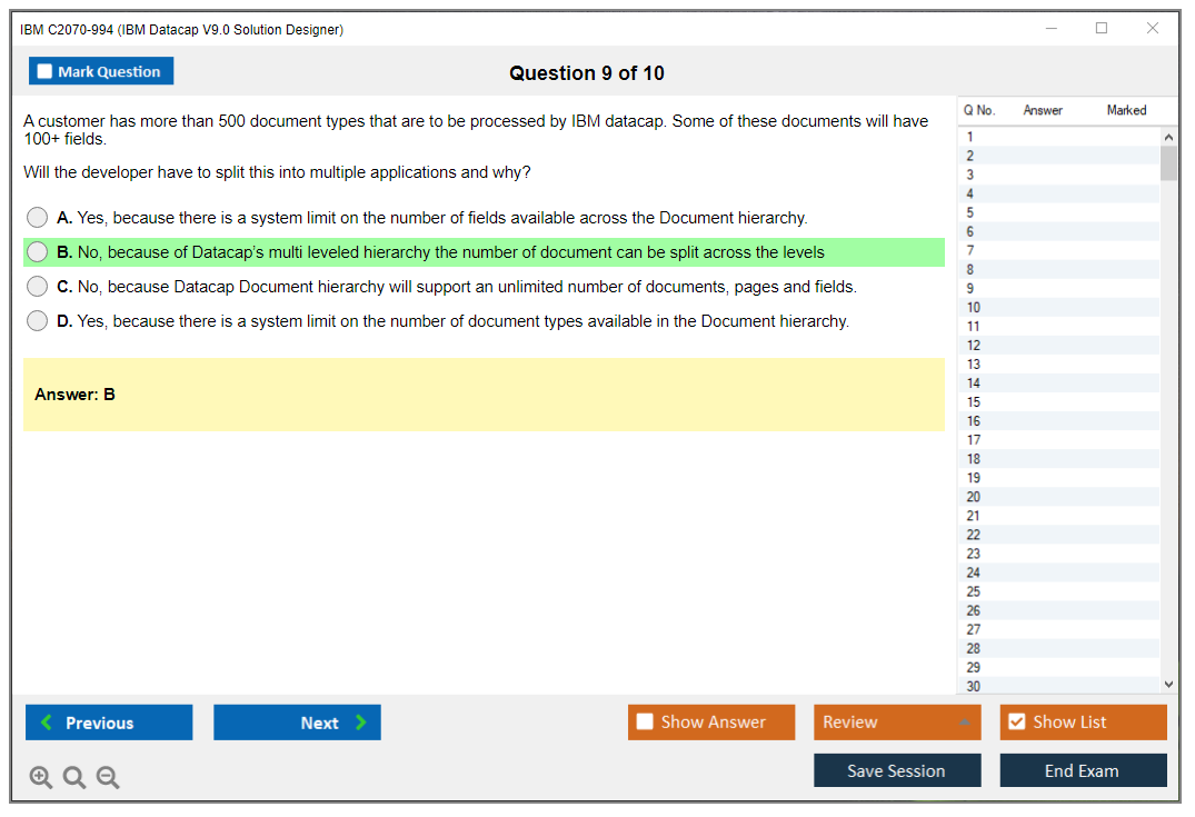 The IBM C2070-994 (IBM Datacap V9.0 Solution Designer) Exam is designed to test the knowledge and skills of individuals in designing and implementing IBM Datacap solutions. This certification validates the candidate's ability to effectively use IBM Datacap features and functionalities to automate data capture and document processing.