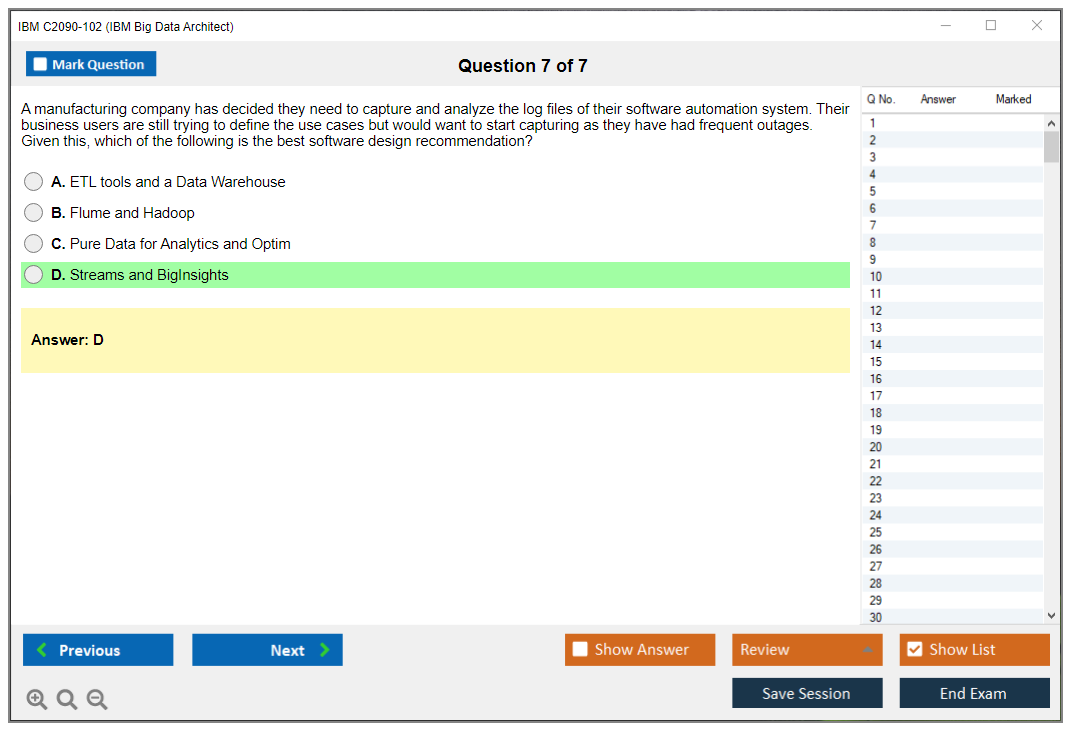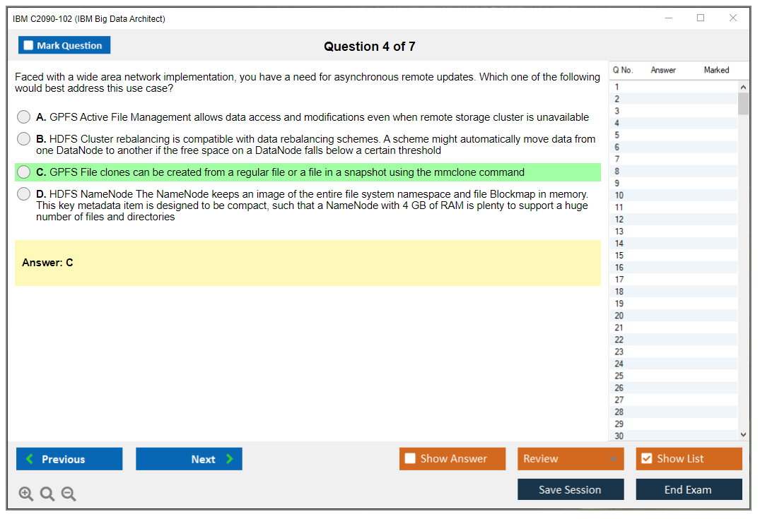 The IBM C2090-102 exam, also known as the IBM Big Data Architect exam, is designed to validate the skills and knowledge of professionals in designing and implementing big data solutions using IBM technologies and tools.
