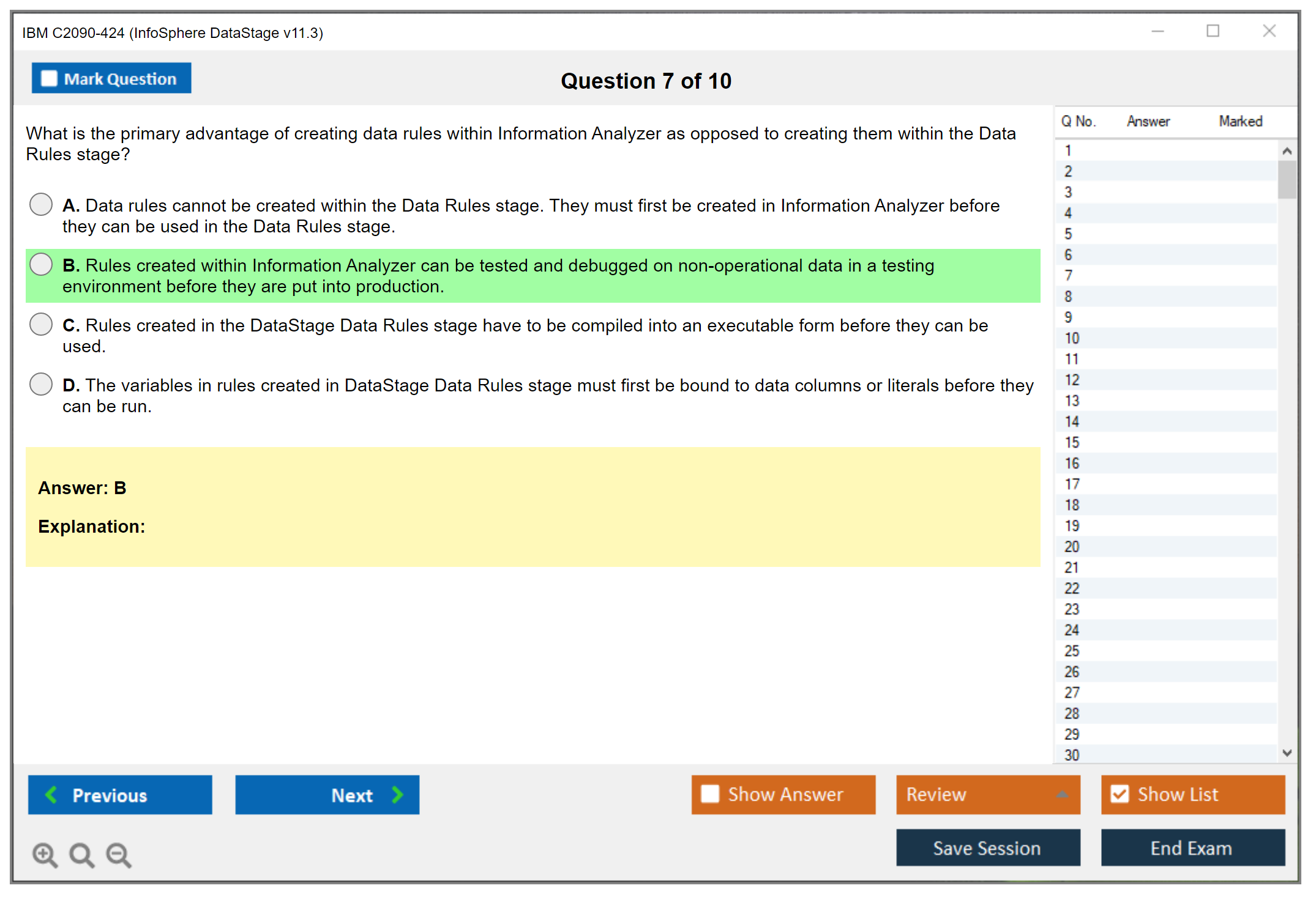 The IBM C2090-424 (InfoSphere DataStage v11.3) exam is designed to test a candidate's knowledge and skills in using IBM InfoSphere DataStage v11.3. This includes understanding the architecture, components, and functionalities of the DataStage ETL tool, as well as designing and implementing data integration solutions.