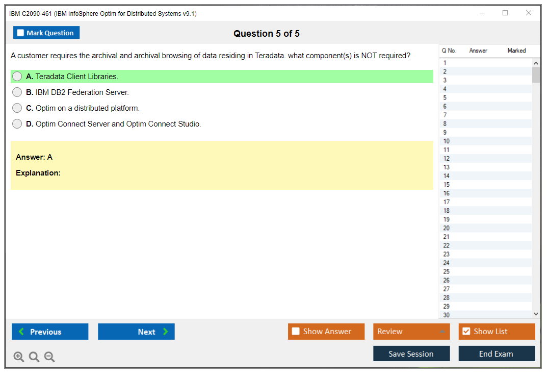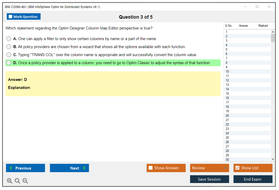 The IBM C2090-461 exam, also known as IBM InfoSphere Optim for Distributed Systems v9.1, is a certification exam designed for professionals who work with IBM InfoSphere Optim solutions on distributed systems. The exam tests the candidate's knowledge and skills in implementing, managing, and troubleshooting IBM InfoSphere Optim solutions.
