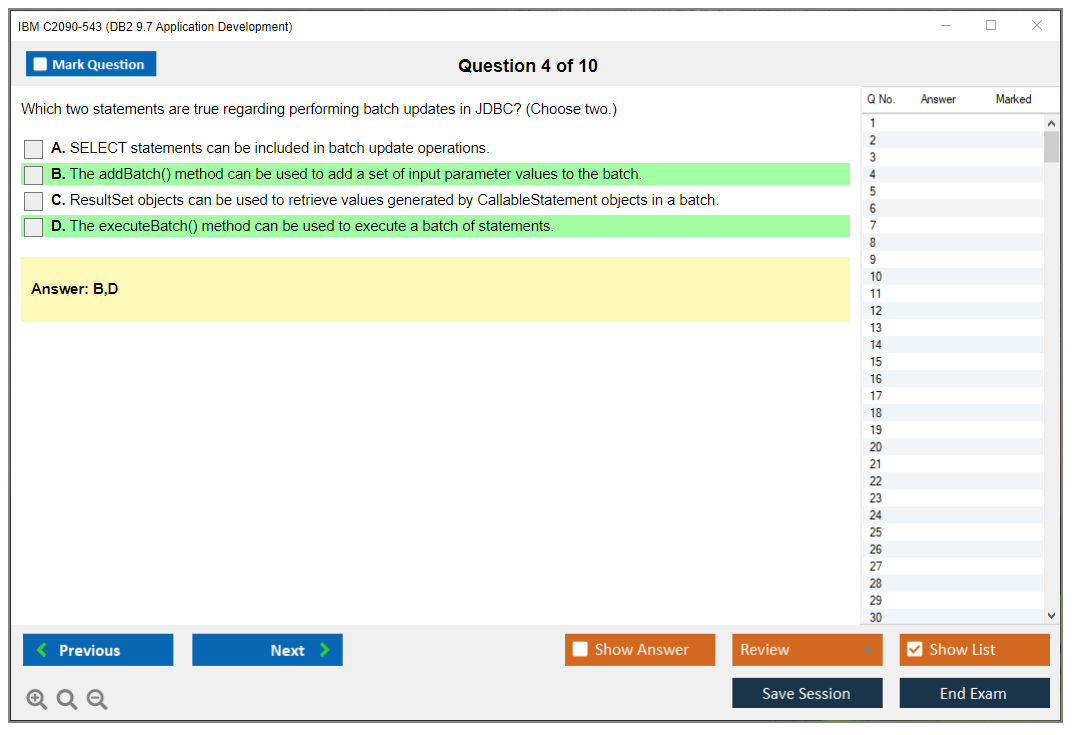 The IBM C2090-543 (DB2 9.7 Application Development) Exam is designed to assess a candidate's proficiency in developing applications using IBM's DB2 9.7 database software. The exam tests skills in areas such as SQL, XML, stored procedures, and more.