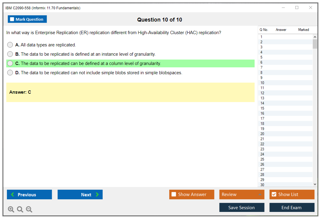 The IBM C2090-558 (Informix 11.70 Fundamentals) Exam is designed to certify the knowledge and skills of individuals in the fundamentals of IBM Informix 11.70 database systems. It covers a range of topics including installation, configuration, and administration of Informix databases.