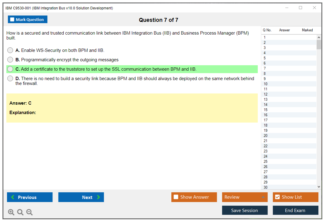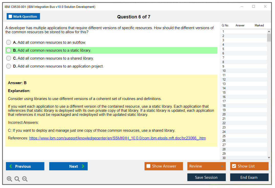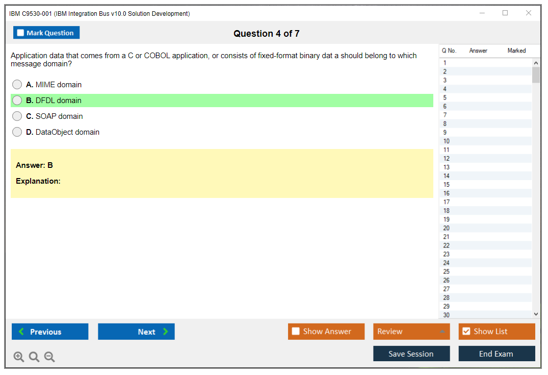 The IBM C9530-001 (IBM Integration Bus v10.0 Solution Development) exam is designed to validate the skills and knowledge of professionals in developing, deploying, and supporting message flow applications using IBM Integration Bus v10.0.