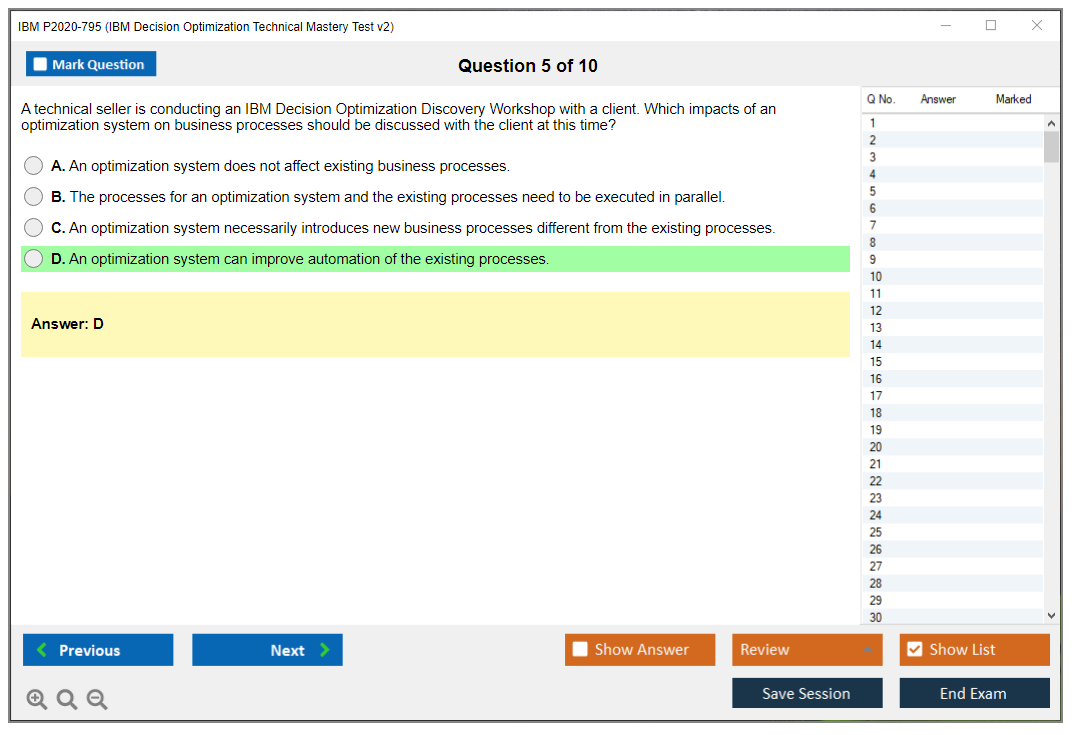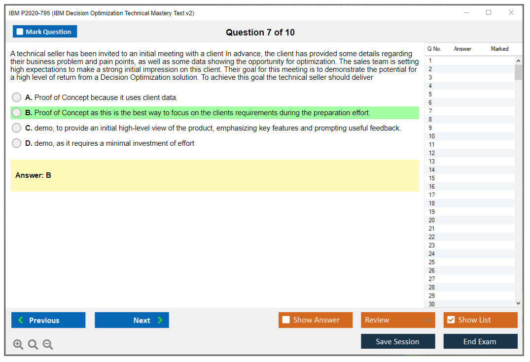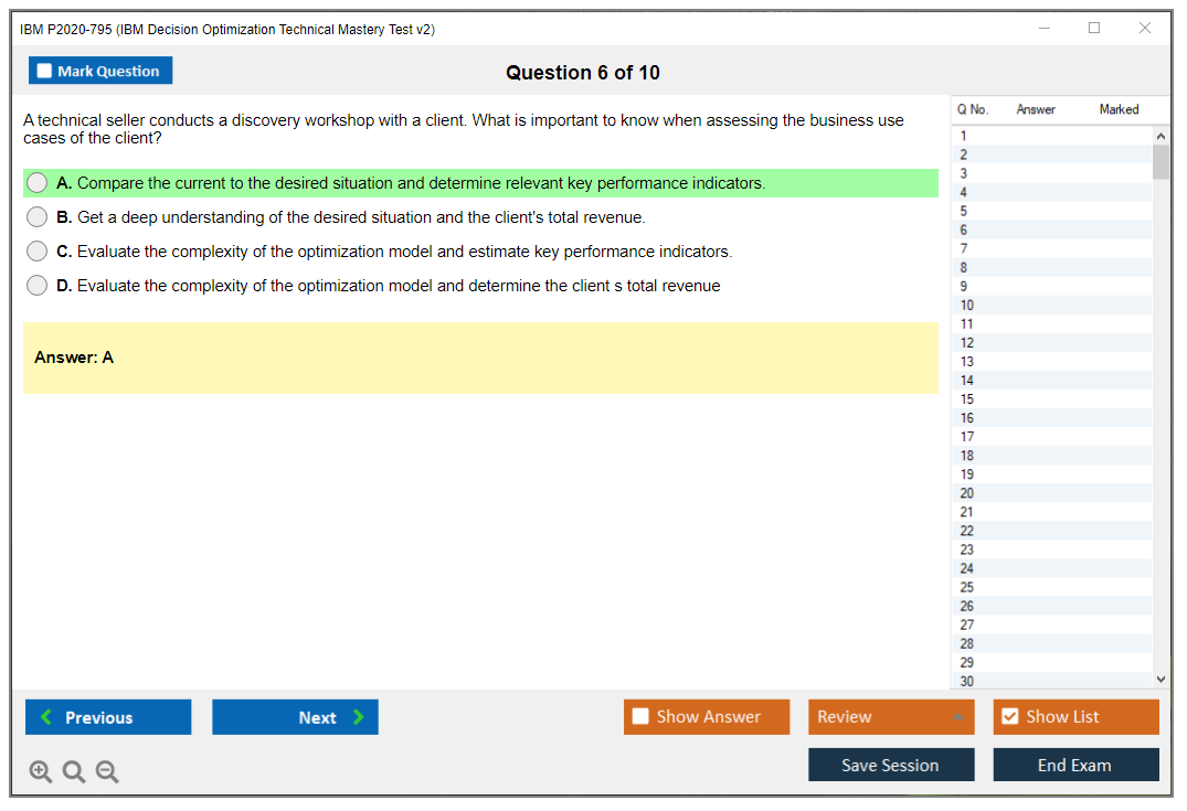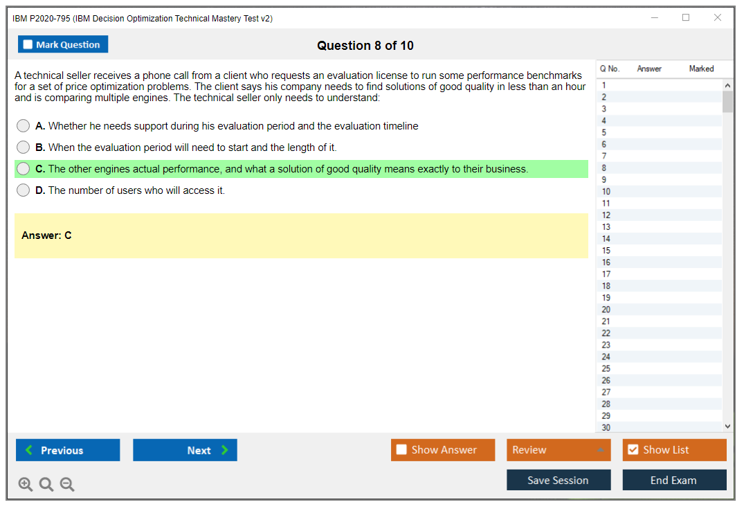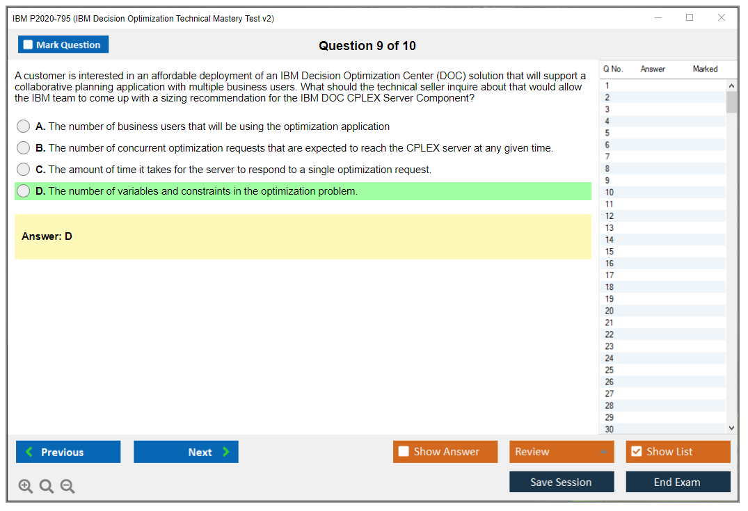 Note: IBM P2020-795 (IBM Decision Optimization Technical Mastery Test v2) will not receive any new updates.