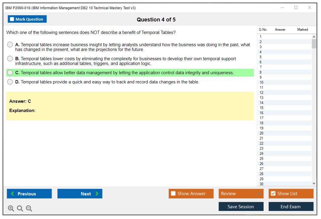 Note: IBM P2090-018 (IBM Information Management DB2 10 Technical Mastery Test v3) will not receive any new updates.