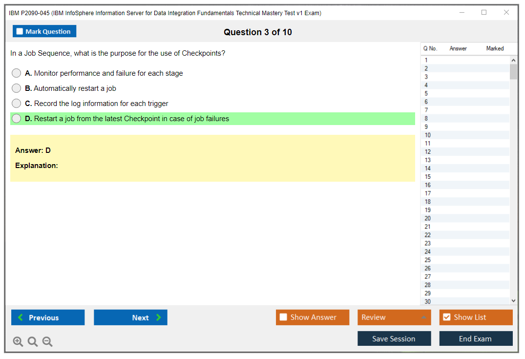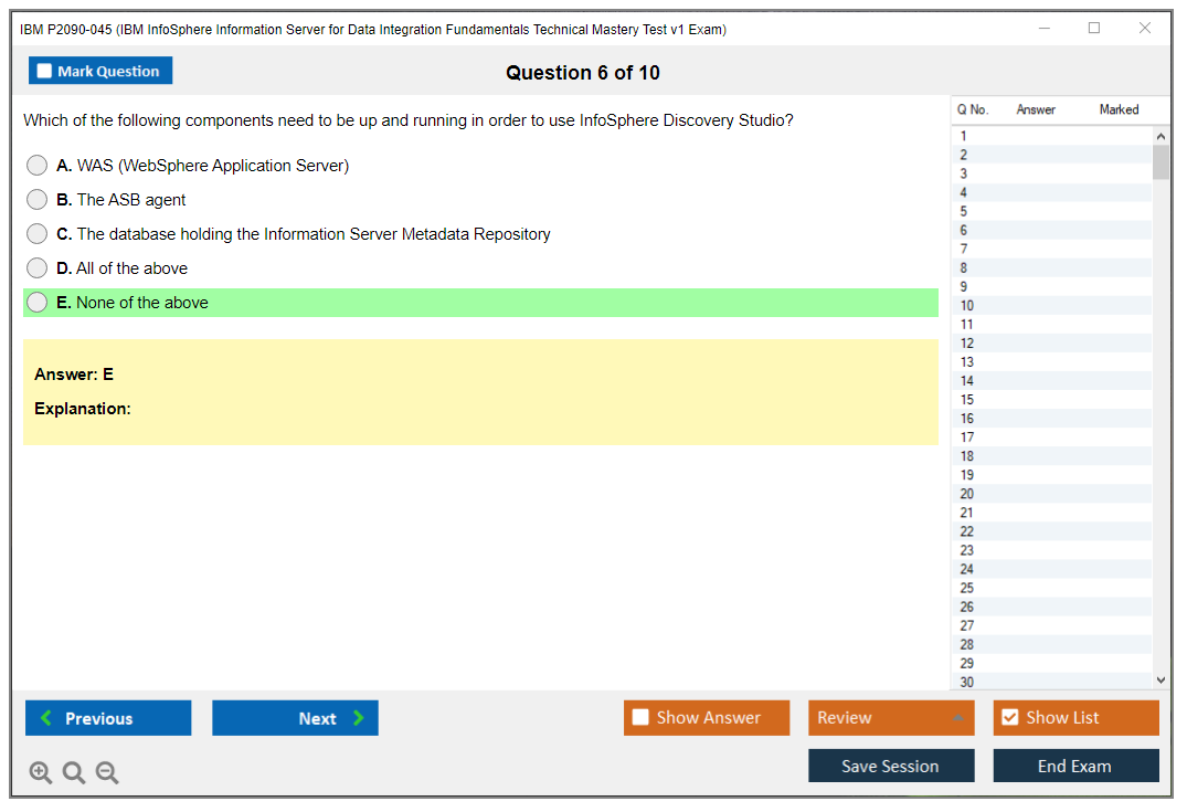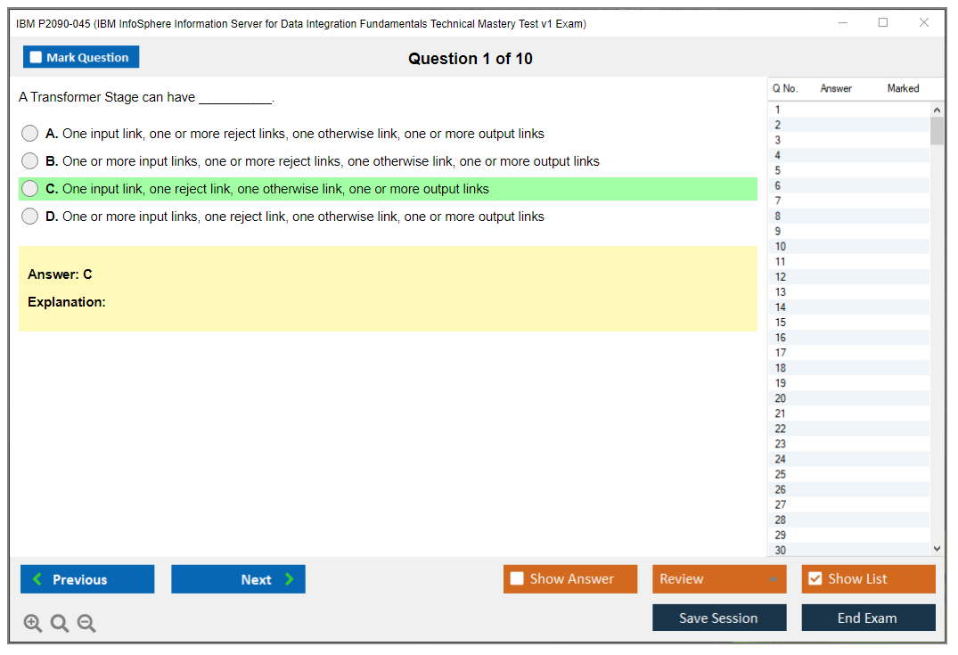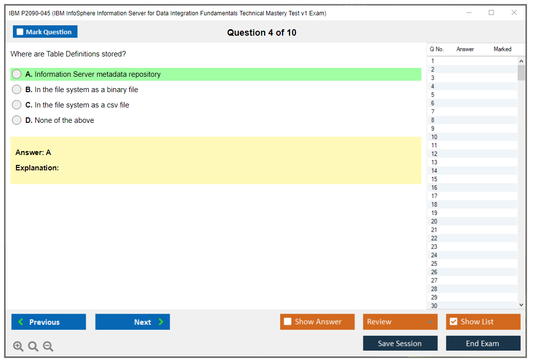 Note: IBM P2090-045 (IBM InfoSphere Information Server for Data Integration Fundamentals Technical Mastery Test v1 Exam) will not receive any new updates.