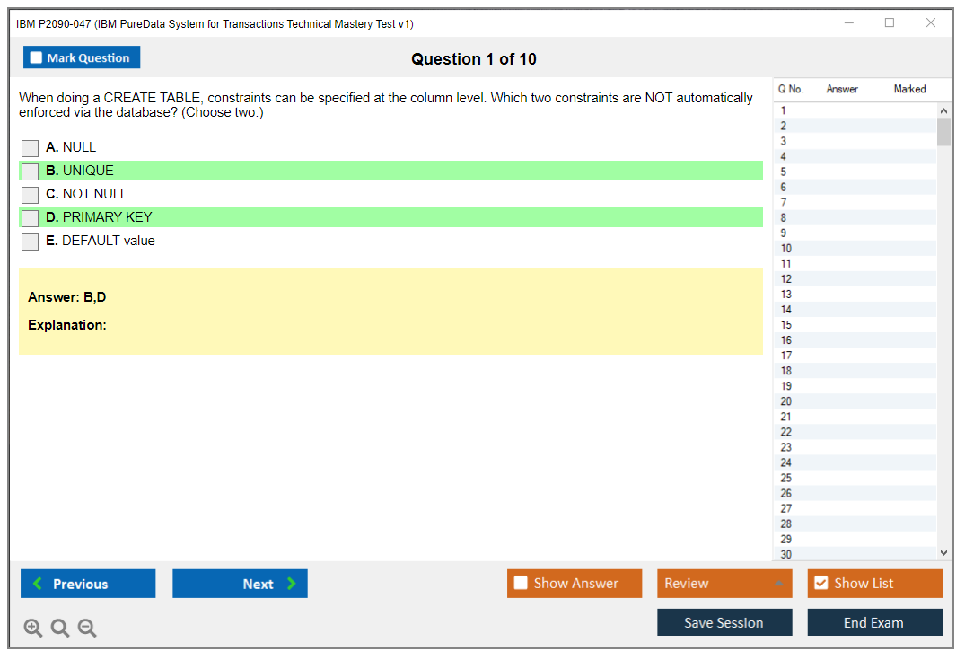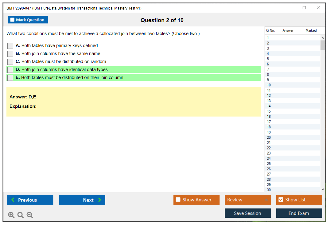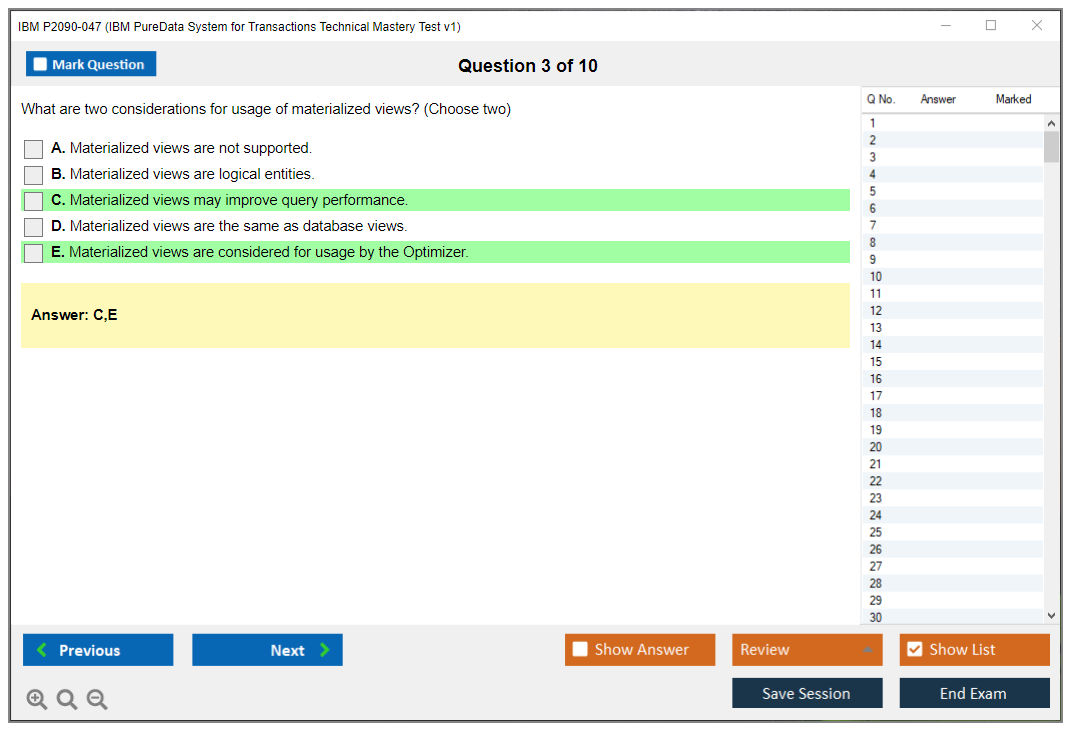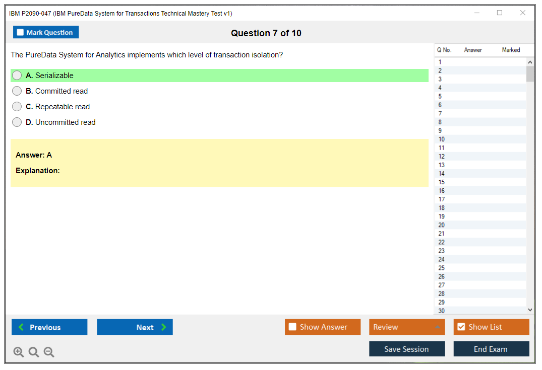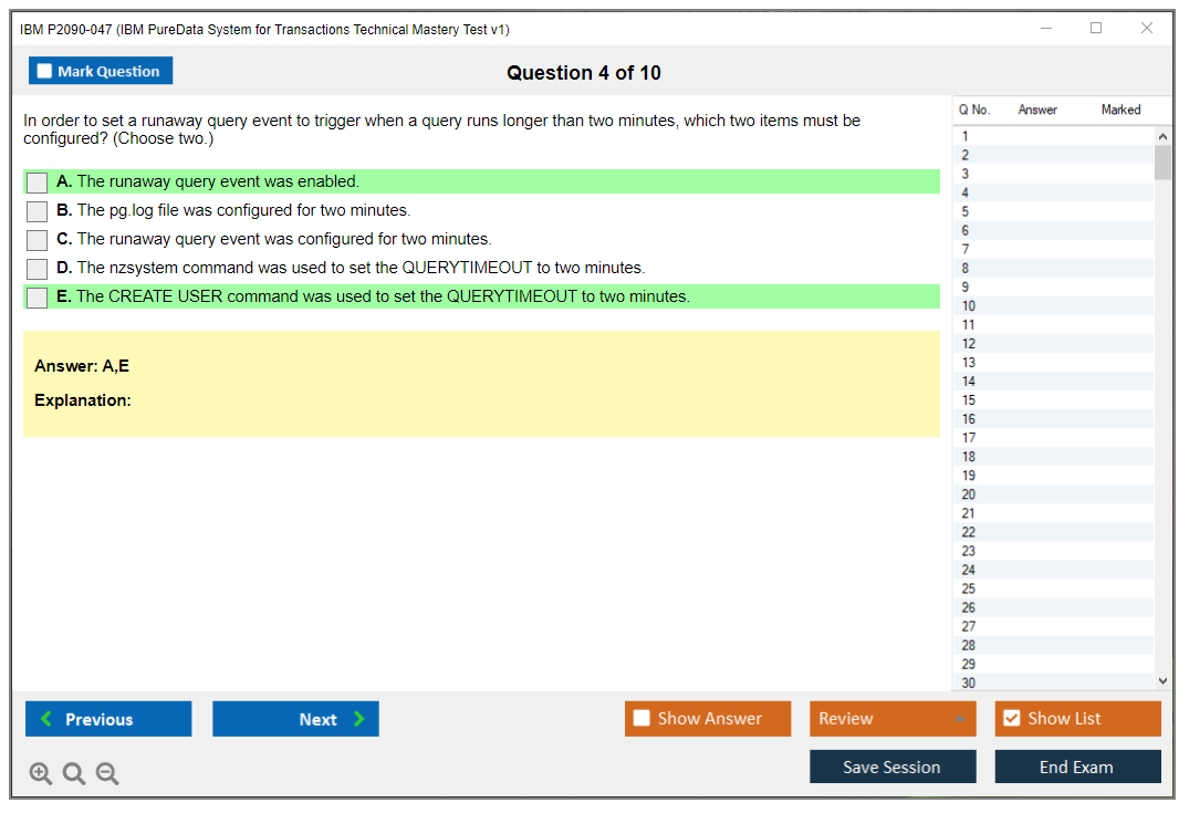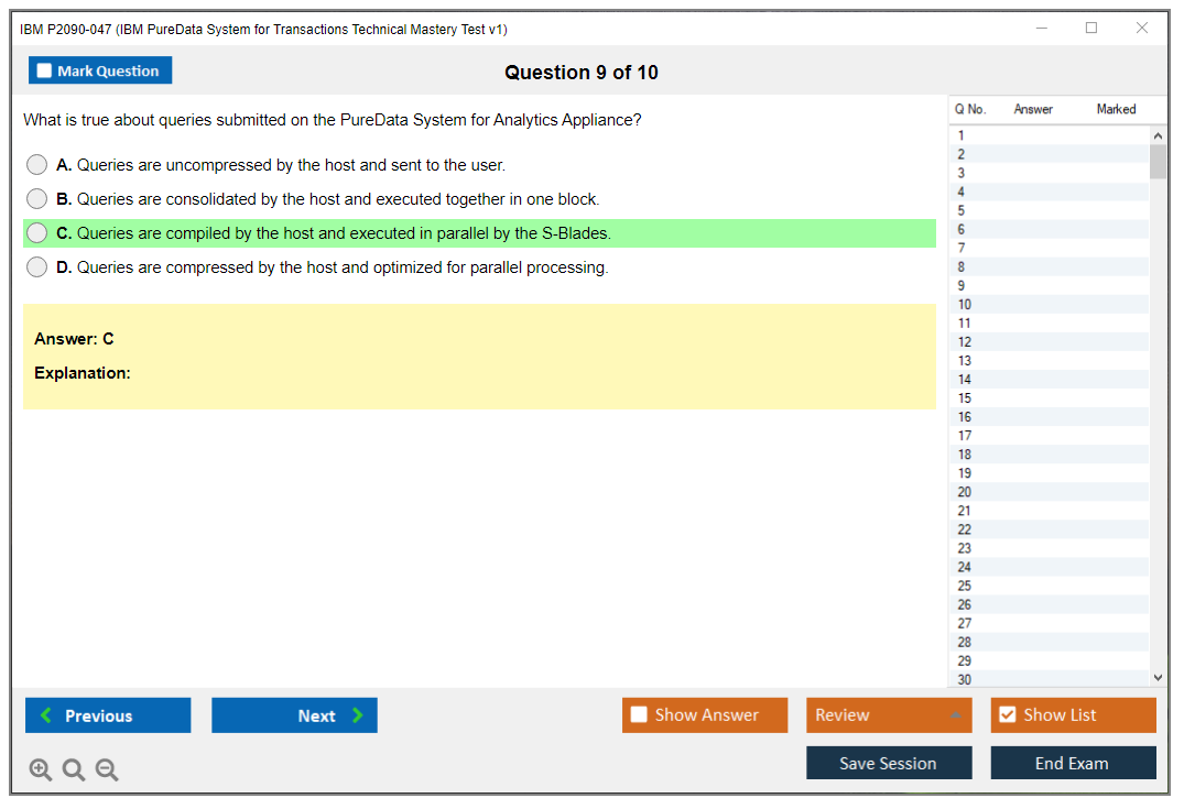 The IBM P2090-047 exam, also known as IBM PureData System for Transactions Technical Mastery Test v1, is intended for individuals who have a deep understanding of IBM PureData System for Transactions, including its architecture, components, and functionalities.