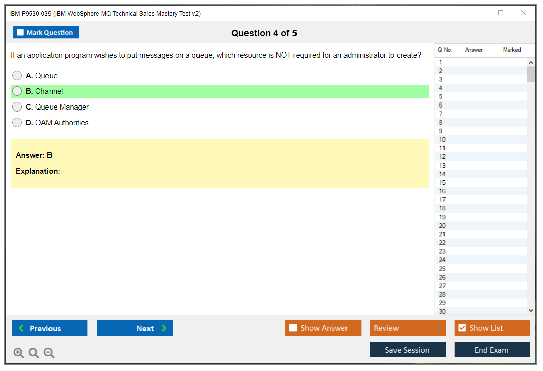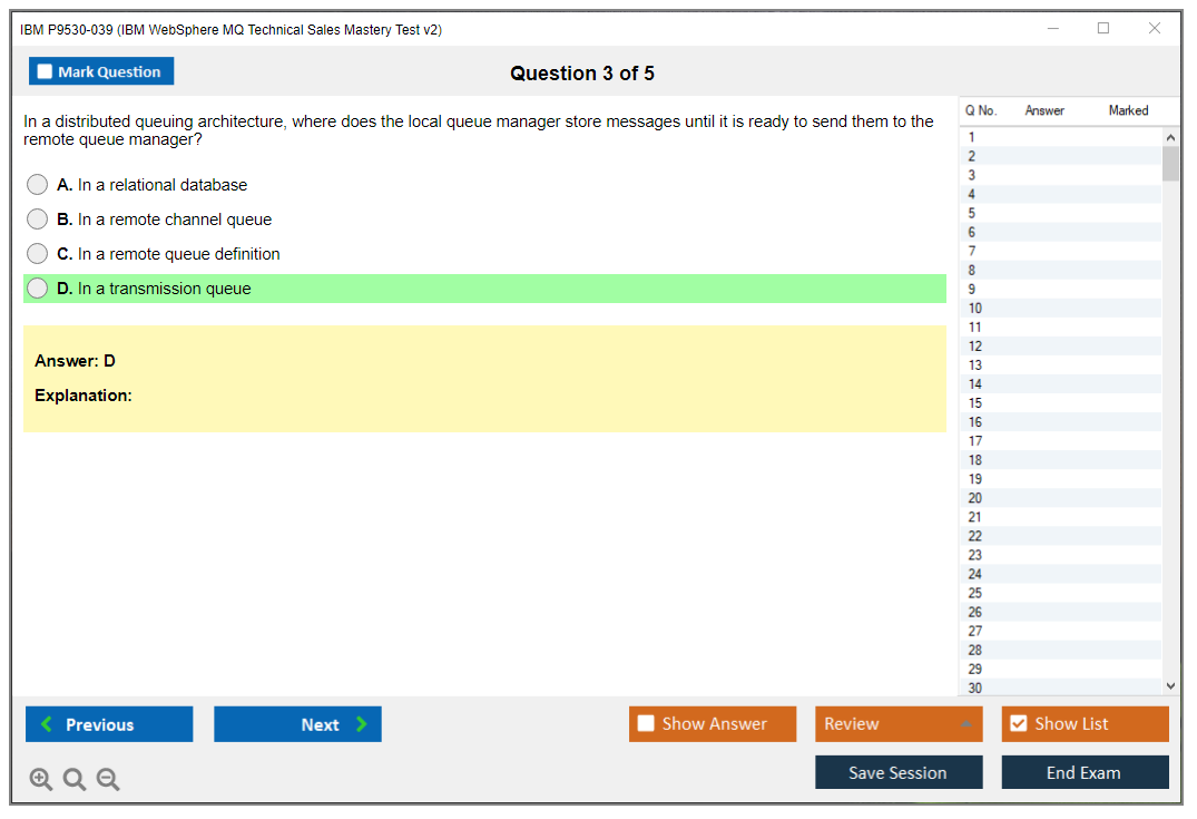 Note: IBM P9530-039 (IBM WebSphere MQ Technical Sales Mastery Test v2) will not receive any new updates.