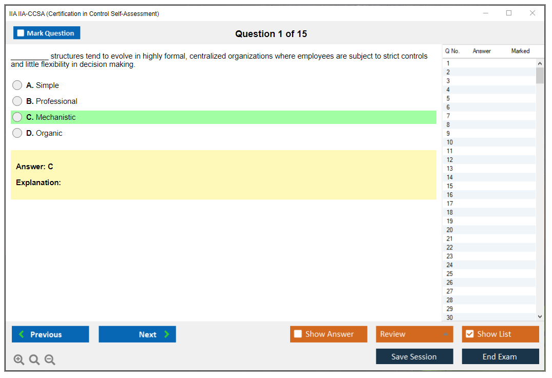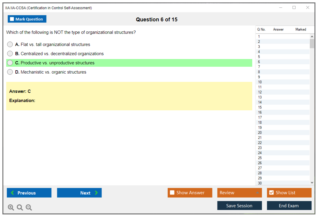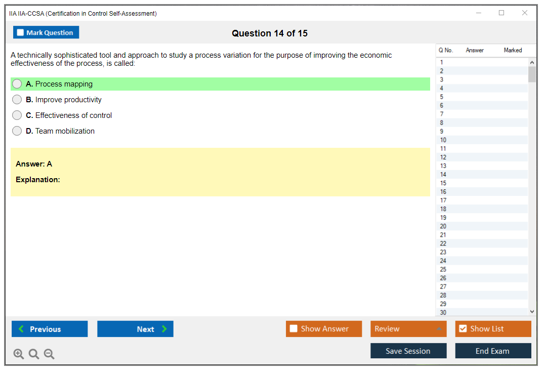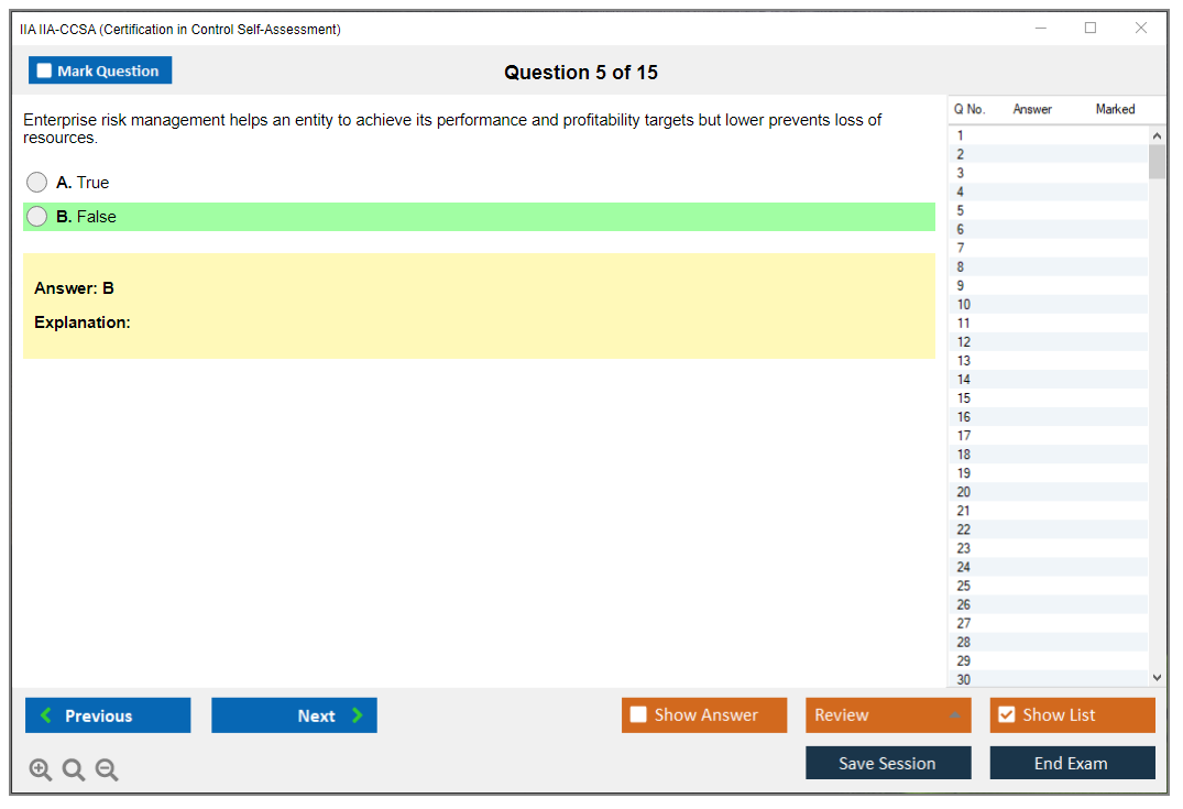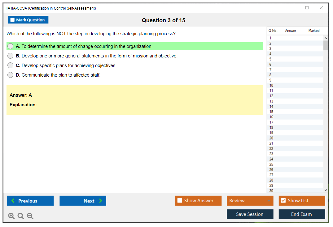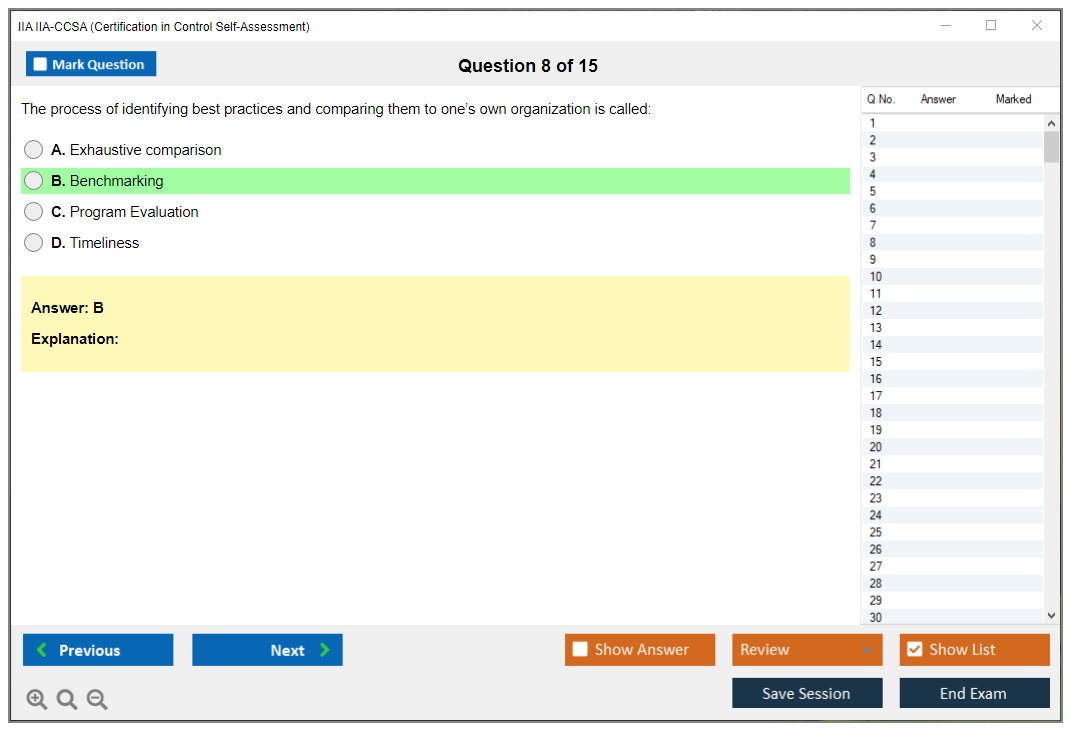 The IIA IIA-CCSA exam is a certification exam offered by the Institute of Internal Auditors (IIA) to validate the expertise of professionals in control self-assessment. It focuses on the principles and practices of self-assessment, risk management, and control processes.