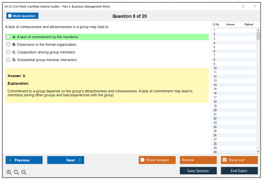 The IIA IIA-CIA-Part4 Exam is the fourth part of the Certified Internal Auditor (CIA) certification, which assesses a candidate's understanding of business management skills.