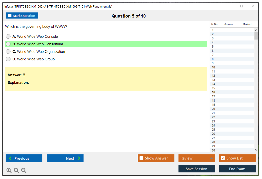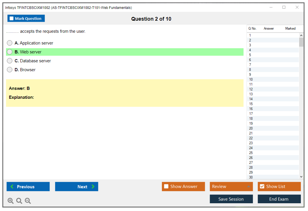 The Infosys TFINTCBSCIXM1002 (AS-TFINTCBSCIXM1002-T101-Web Fundamentals) Exam is designed to assess the foundational knowledge and skills required for web development. It covers various aspects of web technologies, including HTML, CSS, JavaScript, and other web development tools and frameworks.