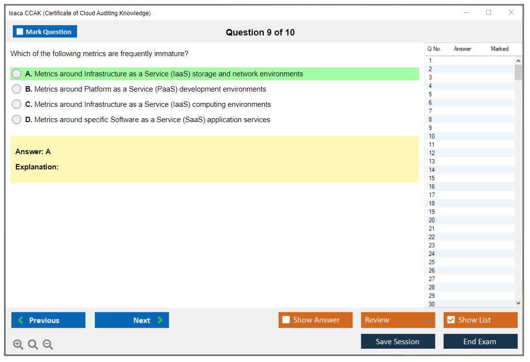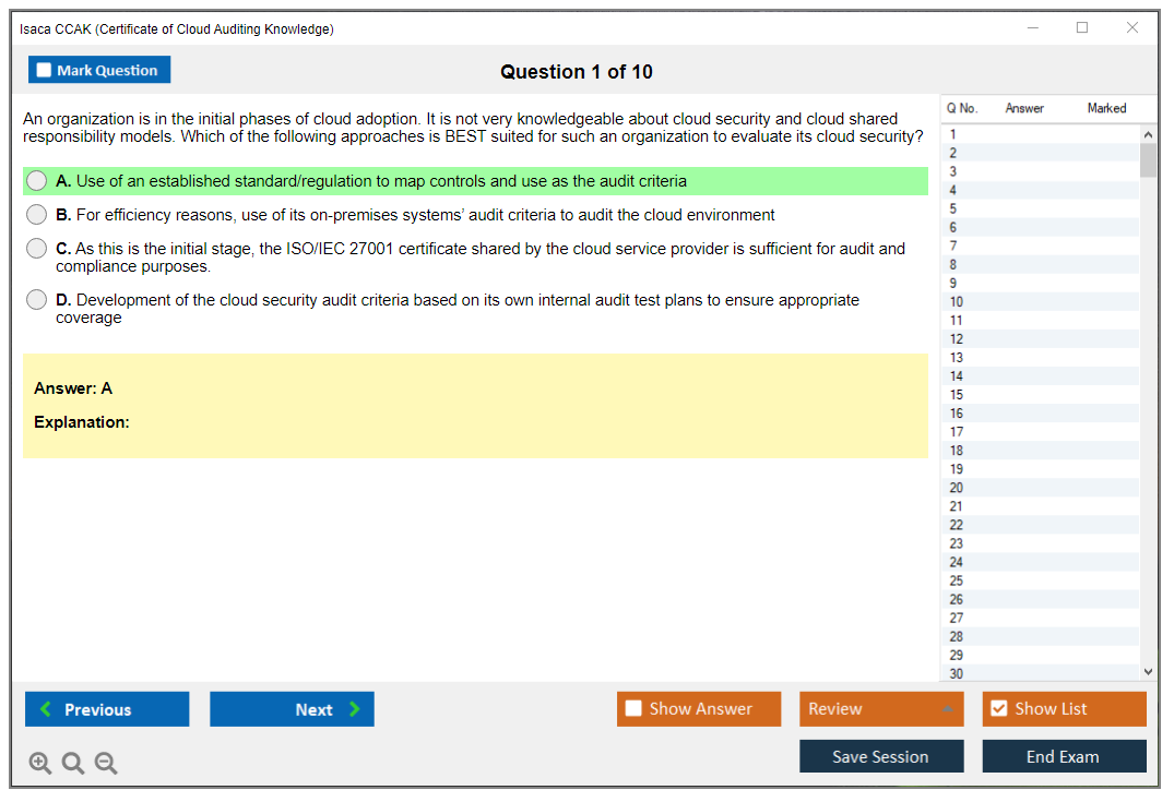 The ISACA Certificate of Cloud Auditing Knowledge (CCAK) exam is designed to validate a candidate's expertise in the essential principles of auditing cloud computing systems. The certification focuses on the unique challenges of cloud environments and aims to provide professionals with the necessary skills to assess and manage cloud-based operations effectively.