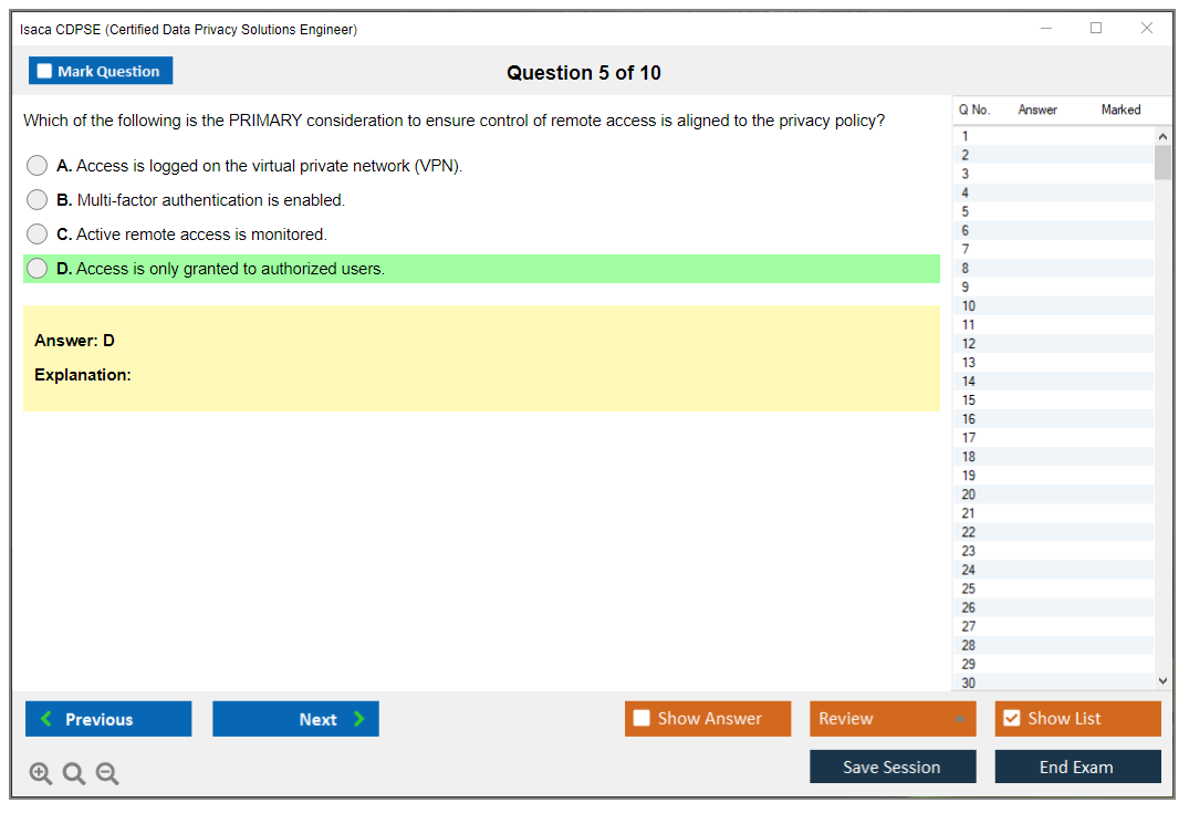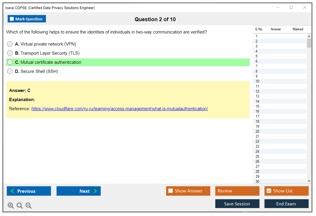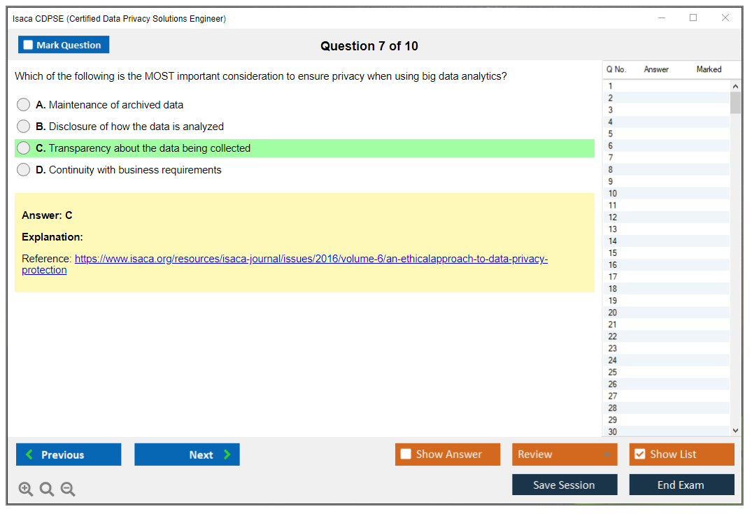 The ISACA Certified Data Privacy Solutions Engineer (CDPSE) exam is a certification designed for professionals who are responsible for implementing privacy solutions and managing data privacy. It validates the skills and knowledge required to assess, build, and implement comprehensive privacy solutions.