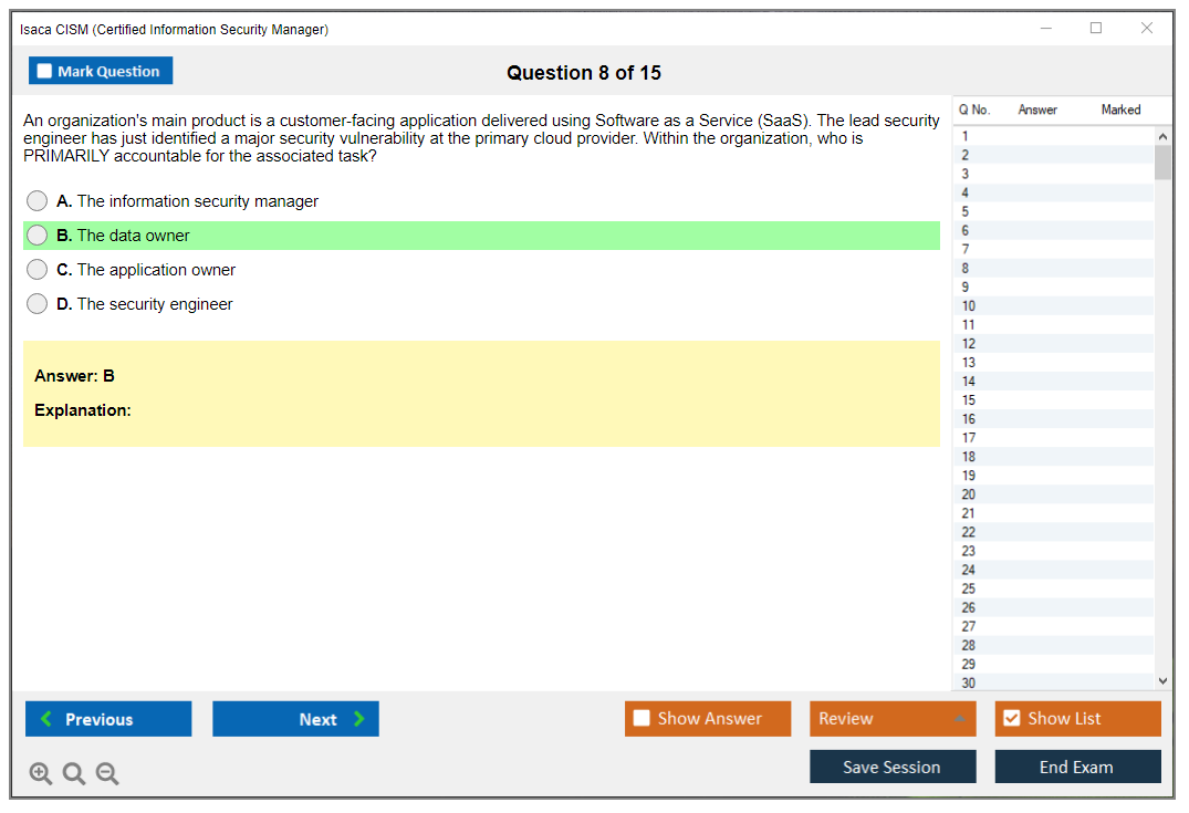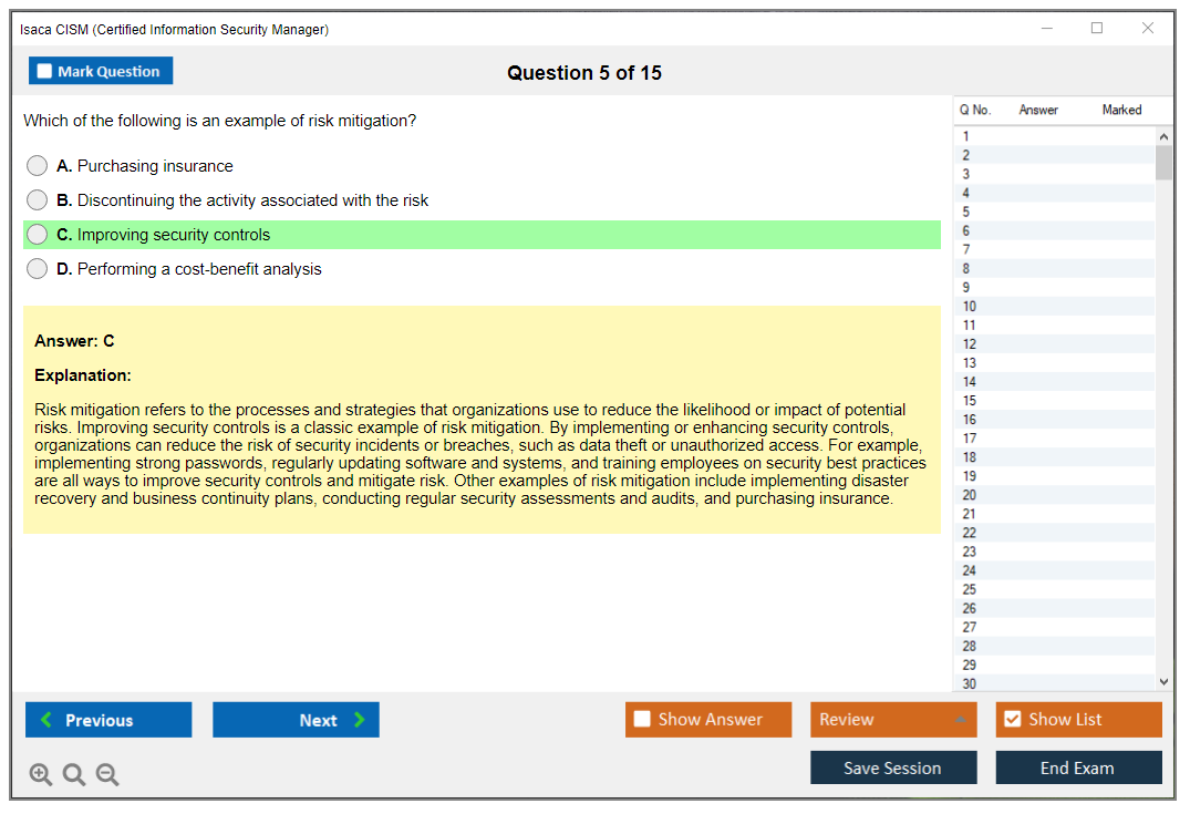 The ISACA CISM exam is a certification exam that validates a professional’s expertise in managing, designing, and overseeing an enterprise’s information security. It is intended for individuals who are responsible for managing an organization’s information security program.