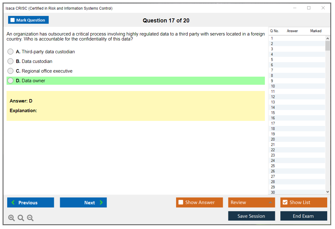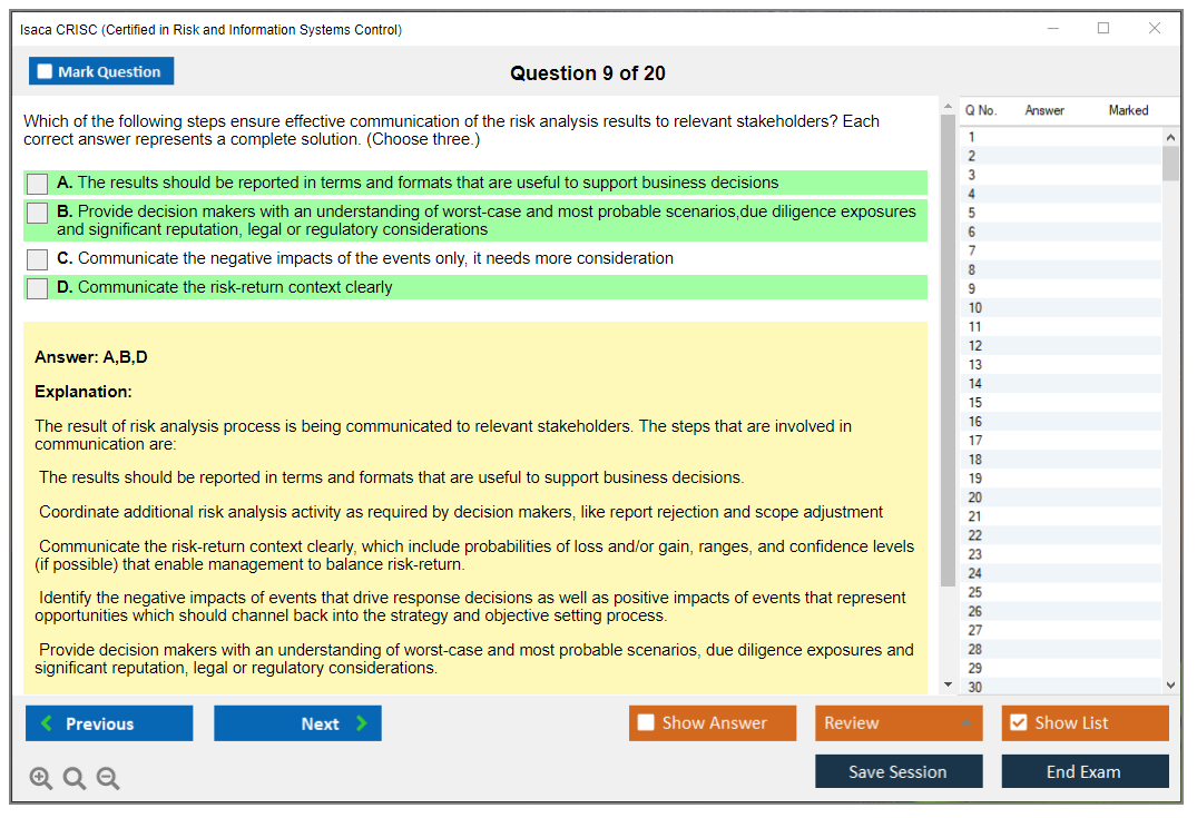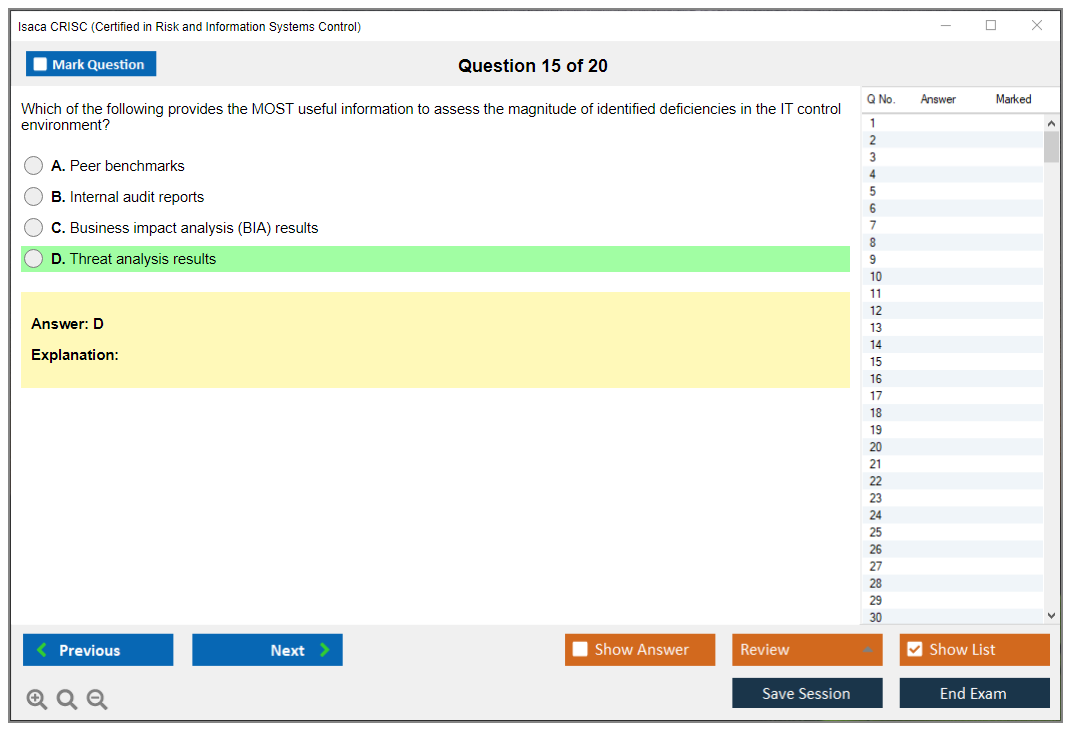 The ISACA CRISC exam is a globally recognized certification that validates the expertise of IT professionals in managing enterprise IT risk and implementing and maintaining information systems controls. The certification is aimed at professionals who are responsible for risk management and control in an enterprise environment.