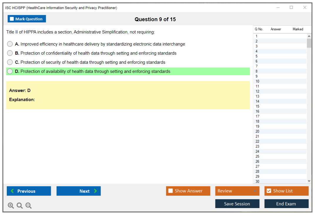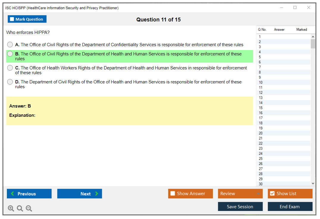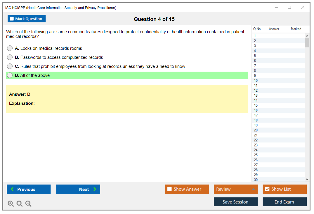 The ISC2 HCISPP (HealthCare Information Security and Privacy Practitioner) Exam is a certification designed for professionals in the healthcare industry who manage and protect sensitive patient information. The certification focuses on the essential knowledge and skills required to implement, manage, and assess the security and privacy controls necessary to protect healthcare information.
