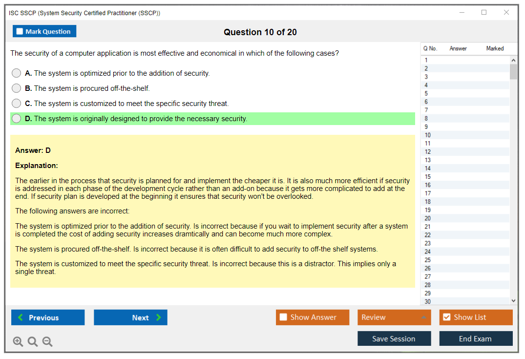 The ISC2 SSCP (Systems Security Certified Practitioner) Exam is designed for IT professionals seeking to validate their skills and knowledge in implementing and managing IT infrastructure while ensuring the security of the data and systems within an organization.