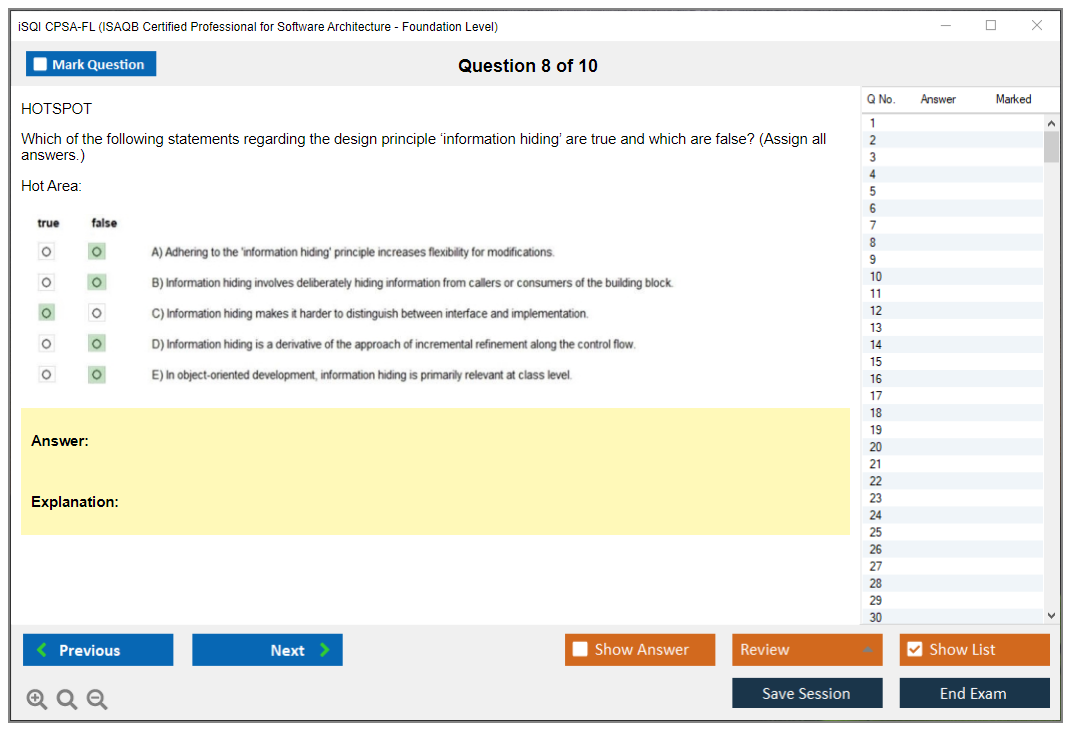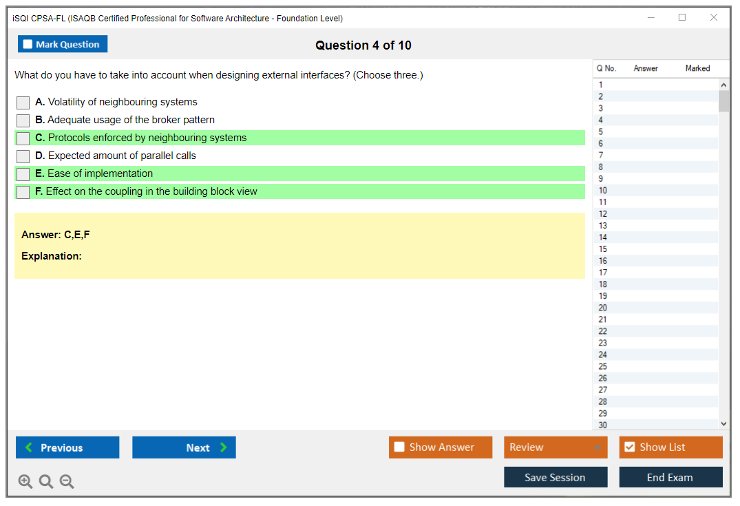 The iSQI CPSA-FL (ISAQB Certified Professional for Software Architecture - Foundation Level) Exam is a certification that validates the foundational knowledge and skills in software architecture. It is designed for individuals who want to demonstrate their understanding of software architecture principles, methodologies, and best practices.