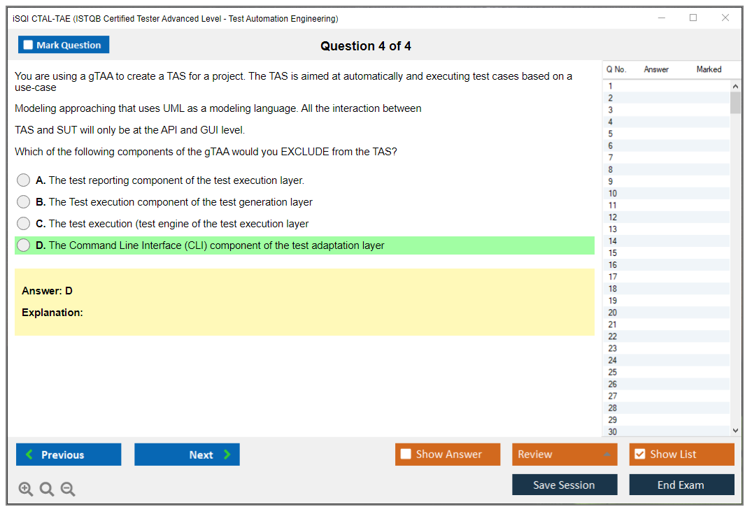 The question format of the iSQI CTAL-TAE Exam is multiple-choice.
