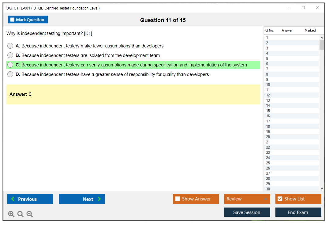 Thanks to the iSQI CTFL-001 Practice Exam from DumpsBoss, I felt fully prepared on exam day. The material was relevant and up-to-date, making DumpsBoss my go-to source for certification prep!