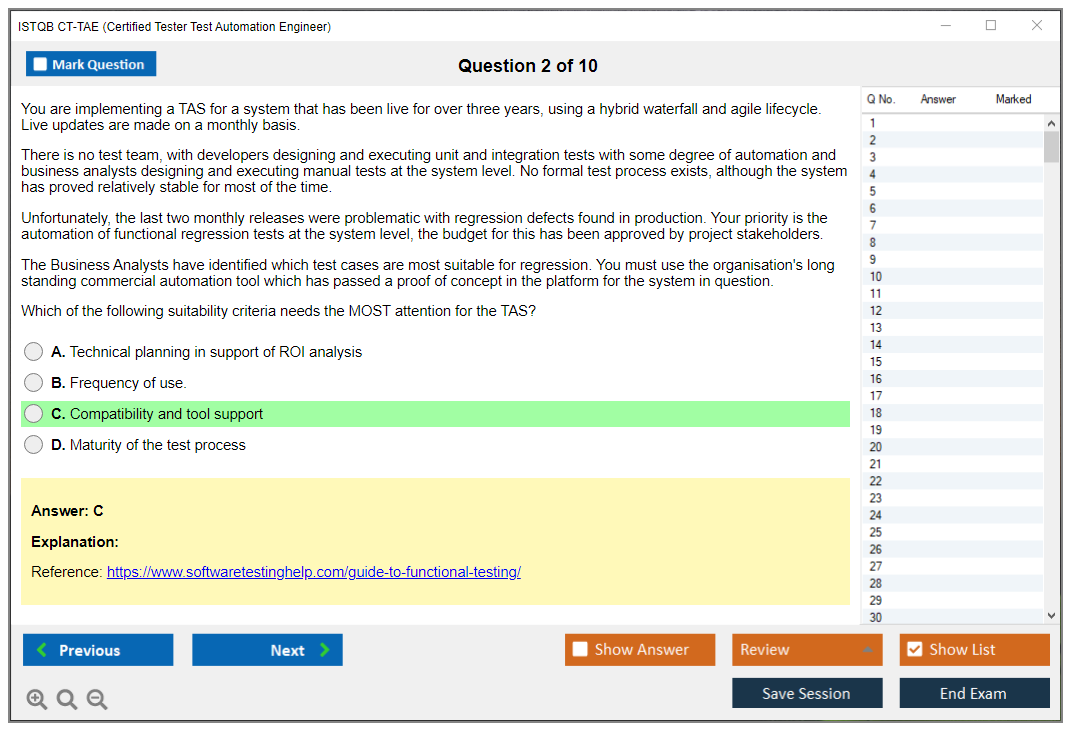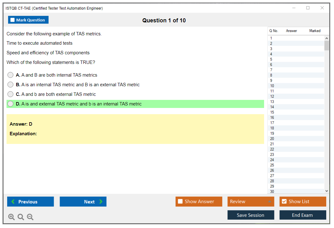 What are the Sample Questions of ISTQB CT-TAE Exam?