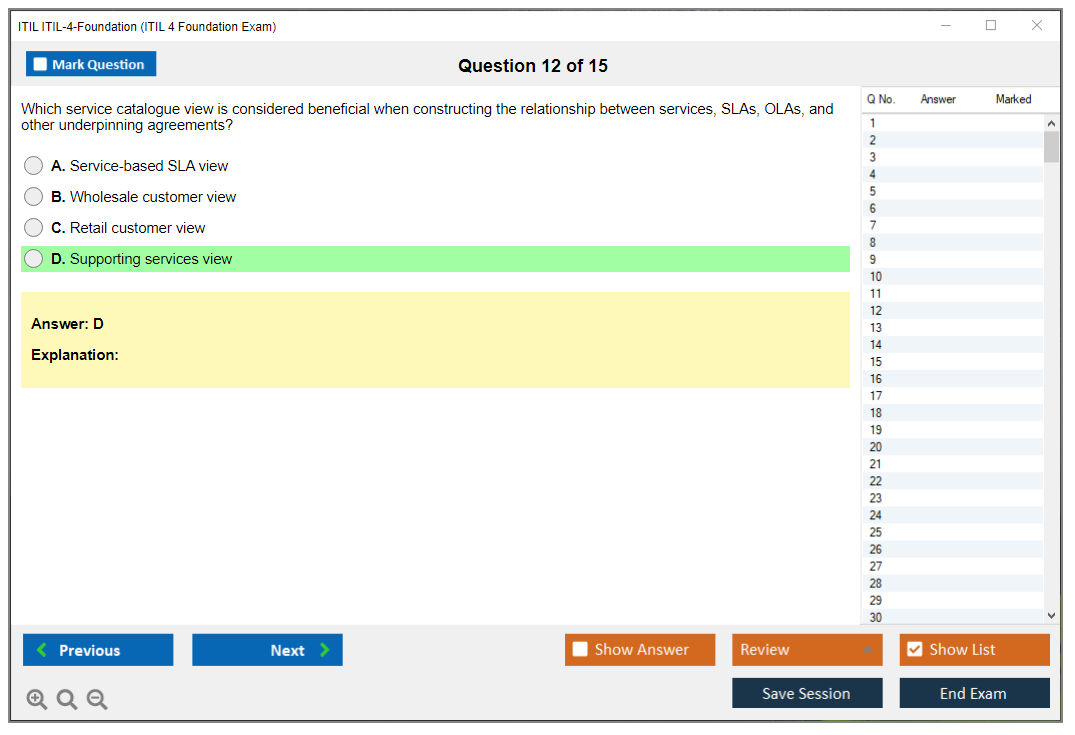 The question format of the ITIL 4 Foundation Exam is multiple-choice.