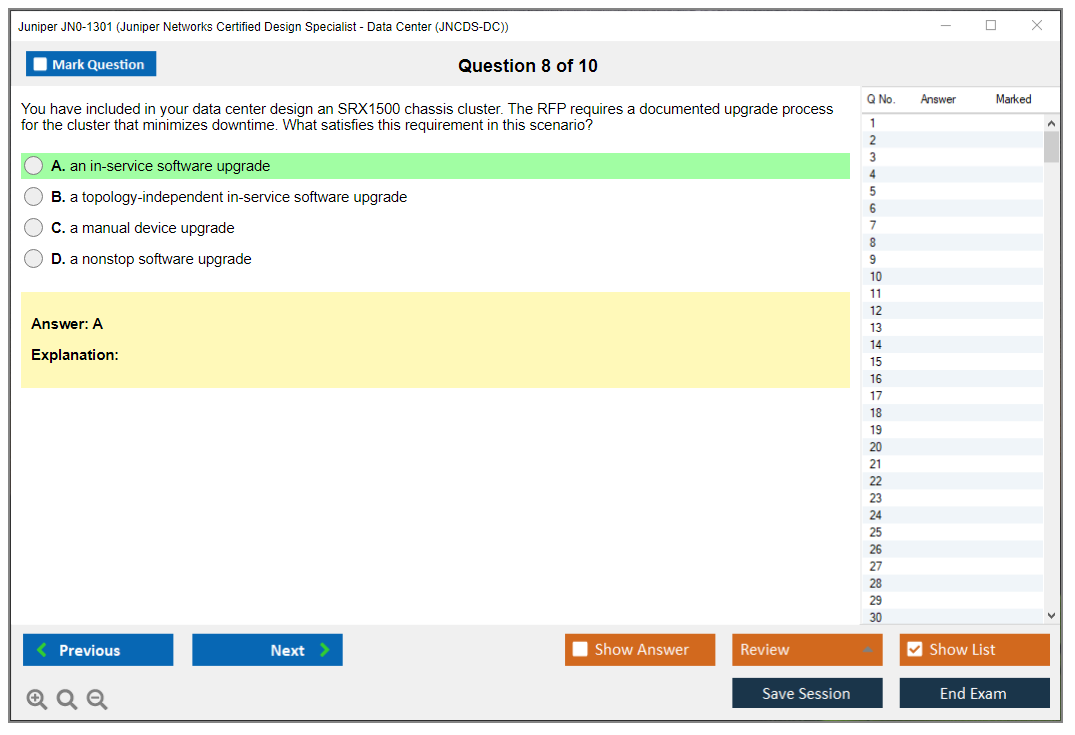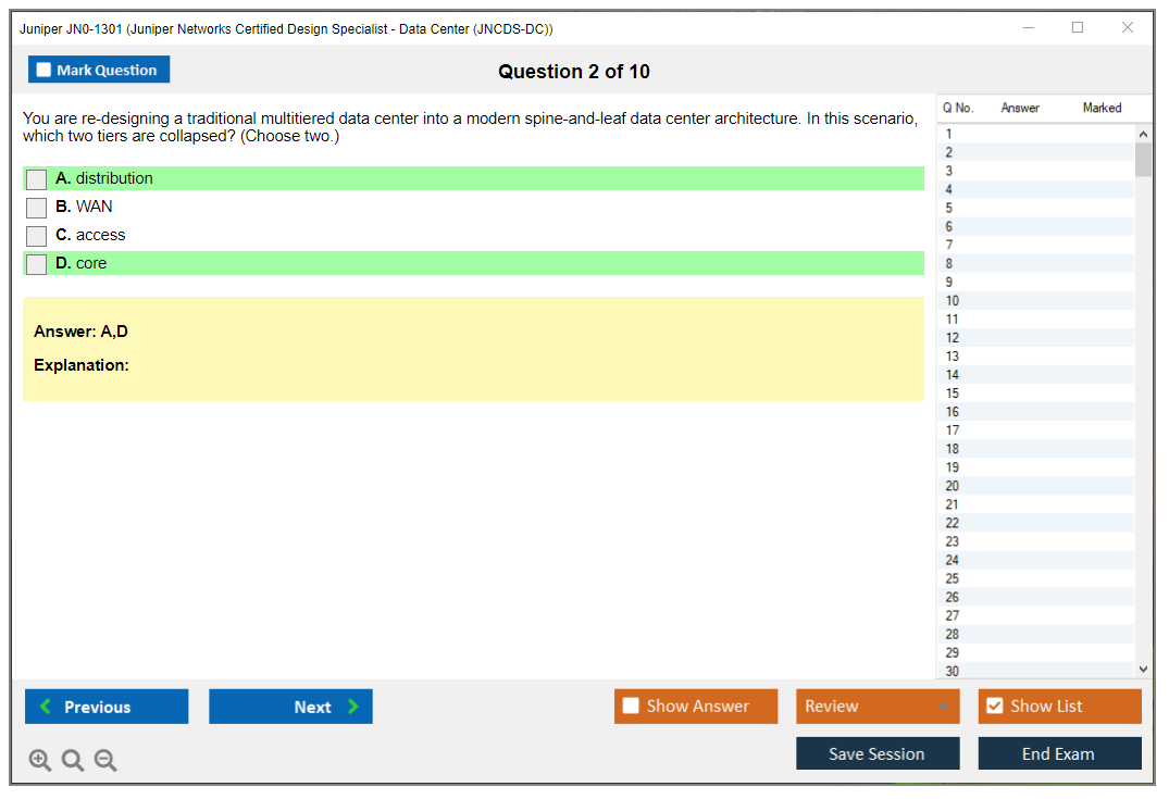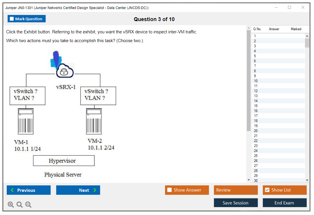 The Juniper JN0-1301 Exam is a certification test that assesses your understanding of data center network design principles and best practices. It is intended for professionals who design and manage data center networks using Juniper Networks technologies.