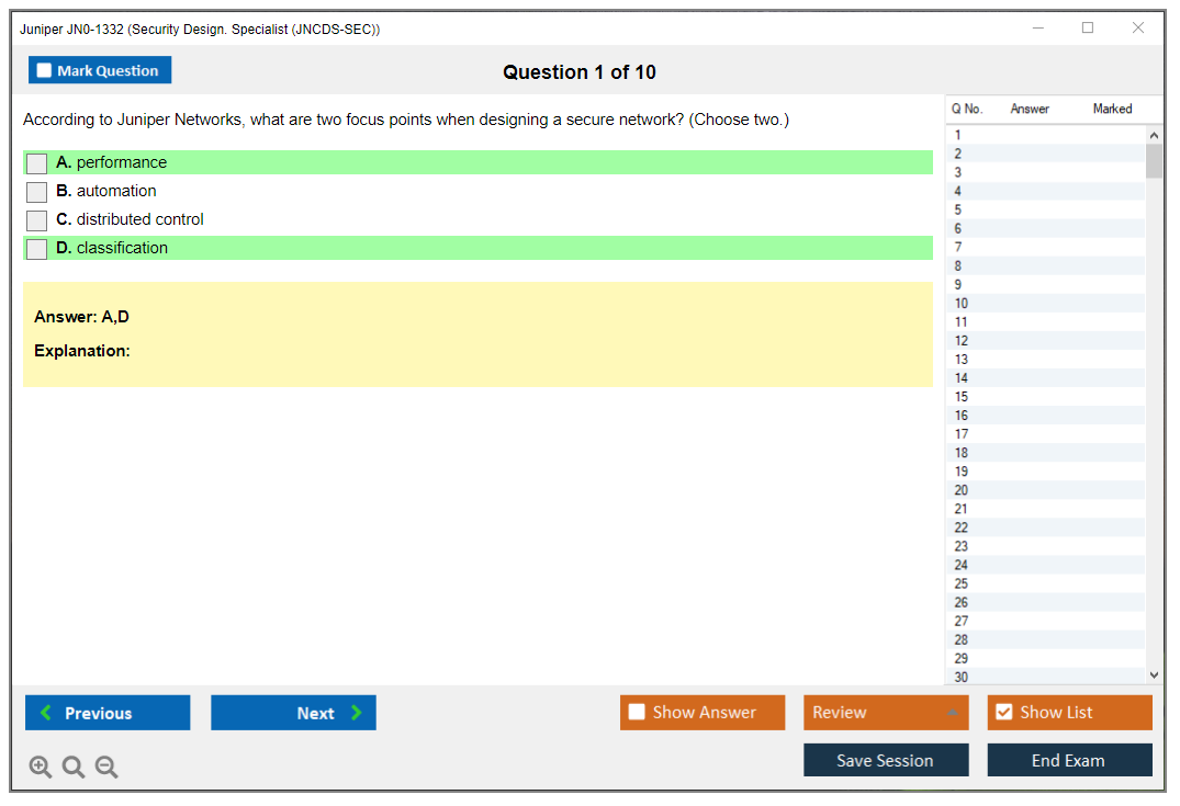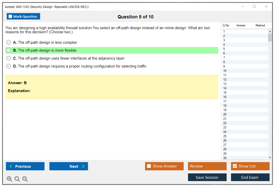 The Juniper JN0-1332 exam assesses the proficiency of candidates in designing secure networks using Juniper Networks technologies. It is part of the Juniper Networks Certified Design Specialist (JNCDS-SEC) certification track.