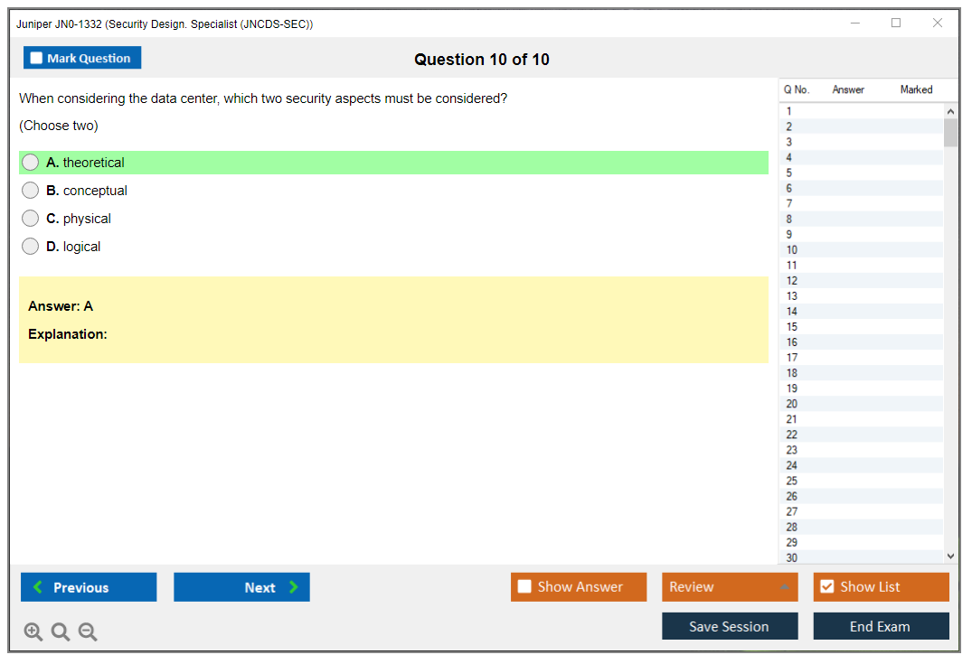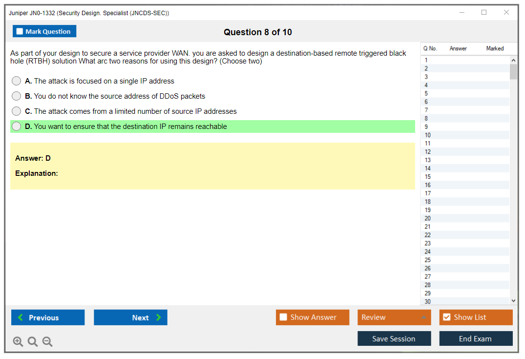 Note: Juniper JN0-1332 (Security Design. Specialist (JNCDS-SEC)) will not receive any new updates.