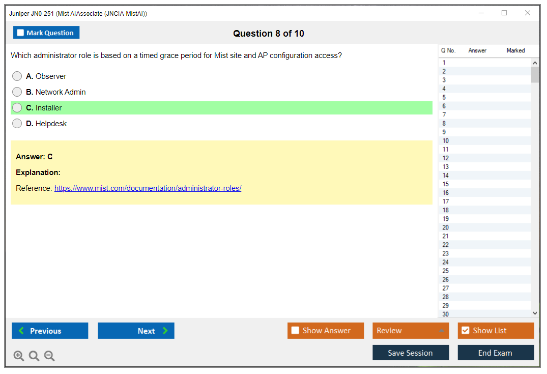 Note: Juniper JN0-251 (Mist AI - Associate (JNCIA-MistAI)) will not receive any new updates.