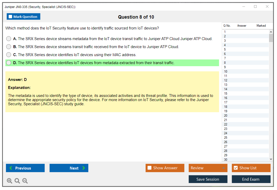 The Juniper JN0-335 exam is a certification test that assesses an individual's understanding and proficiency in advanced security technologies using Juniper Networks' products and solutions. It is aimed at professionals who work with Juniper Networks security solutions and want to demonstrate their expertise.